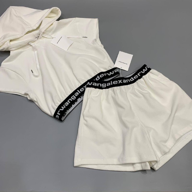 Костюм Alexander Wang LUX-49941 представляет собой стильный и современный ансамбль, состоящий из укороченной толстовки с капюшоном и шорт. Этот костюм идеально подойдет для создания расслабленных, но элегантных образов в стиле athleisure. Акцент на контрастном брендированном поясе с логотипом Alexander Wang добавляет изделию узнаваемости и трендовости.