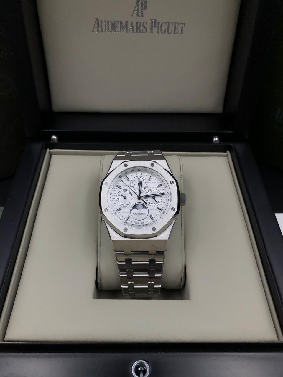 Характеристики: Корпус-Часовая сталь Механизм- Автоматический (механика с автоподзаводом) Калибр-Мануфактурный Стекло-Сапфировое Браслет-Часовая сталь Застёжка-Клипса фирменная Диаметр-44 мм