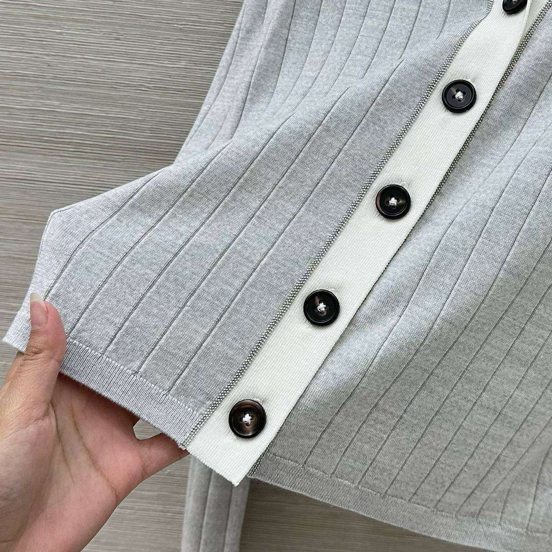 Костюм 3-ка Brunello Cucinelli – это стильный и комфортный комплект, выполненный в элегантном дизайне. Сочетание майки, кардигана и брюк делает его универсальным решением для создания различных образов.