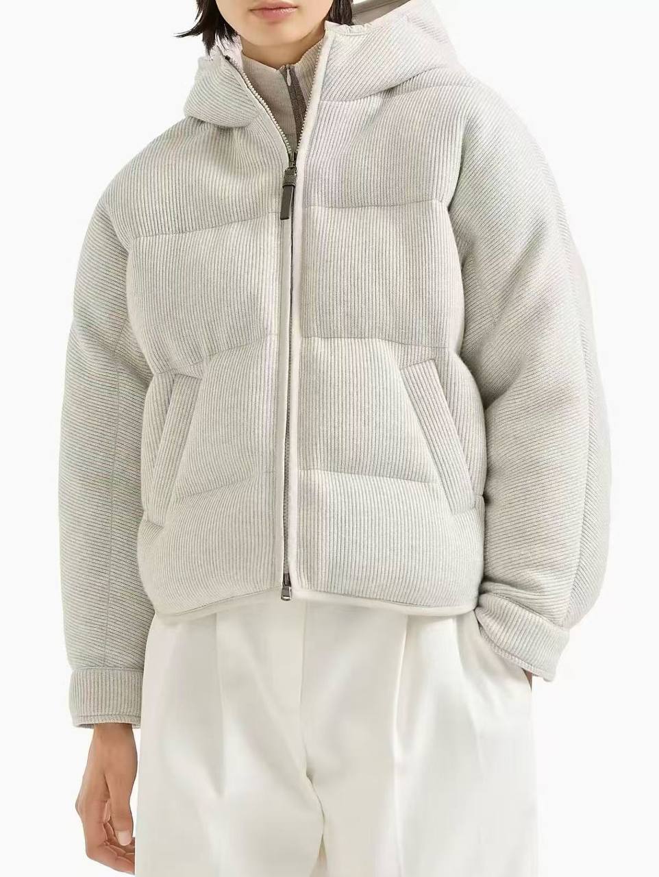 Brunello Cucinelli представляет стильную женскую куртку, сочетающую в себе комфорт и элегантность. Этот предмет гардероба идеально подходит для создания утонченных и практичных образов в прохладную погоду.