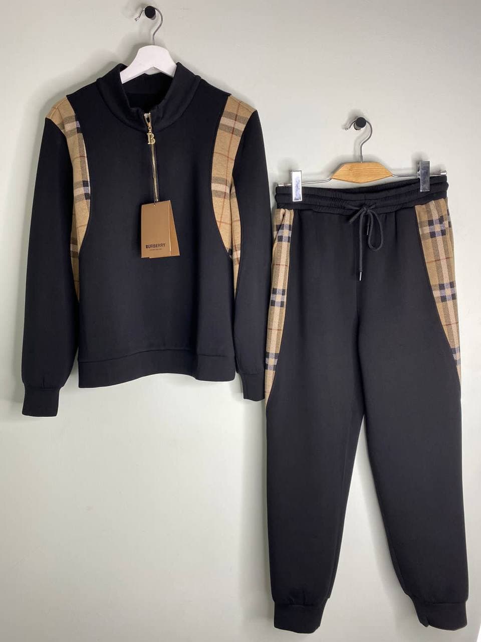 Костюм спортивный Burberry LUX-58044 представляет собой элегантный и современный комплект, выполненный в классическом черном цвете. Дизайн дополнен фирменной клеткой Burberry, что придает изделию узнаваемый стиль. Этот спортивный костюм идеально подходит для создания непринужденных, но в то же время стильных образов, как для активного отдыха, так и для повседневной носки.