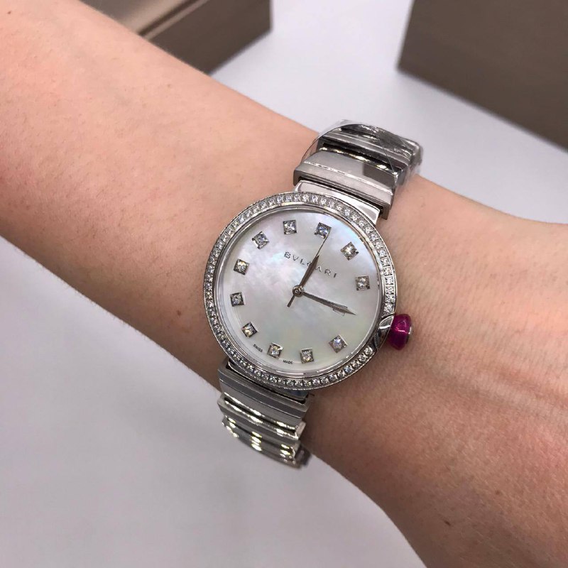 Корпус сталь, японский кварцевый механизм мийота, минеральное стекло сдерживает мелкие царапины, камни цирконы, циферблат перламутр.