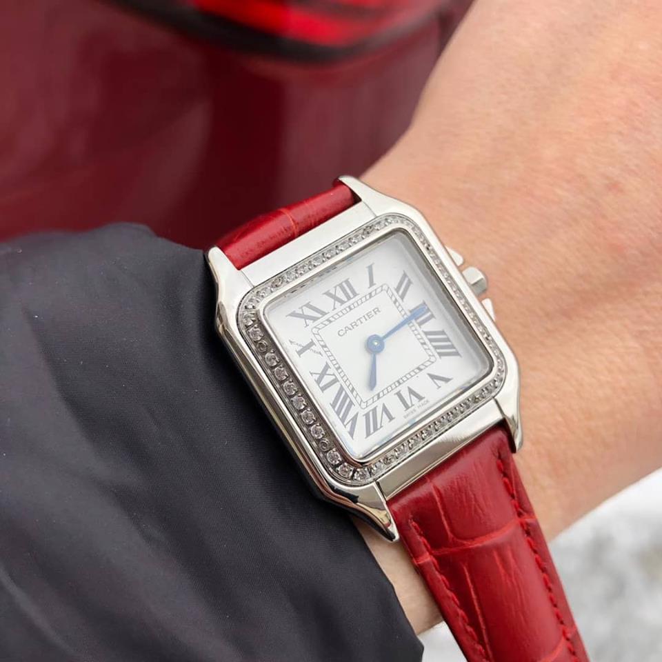 Корпус сталь 26мм*28мм, кварц, камни цирконы, ремень кожа с тиснением под крокодила.