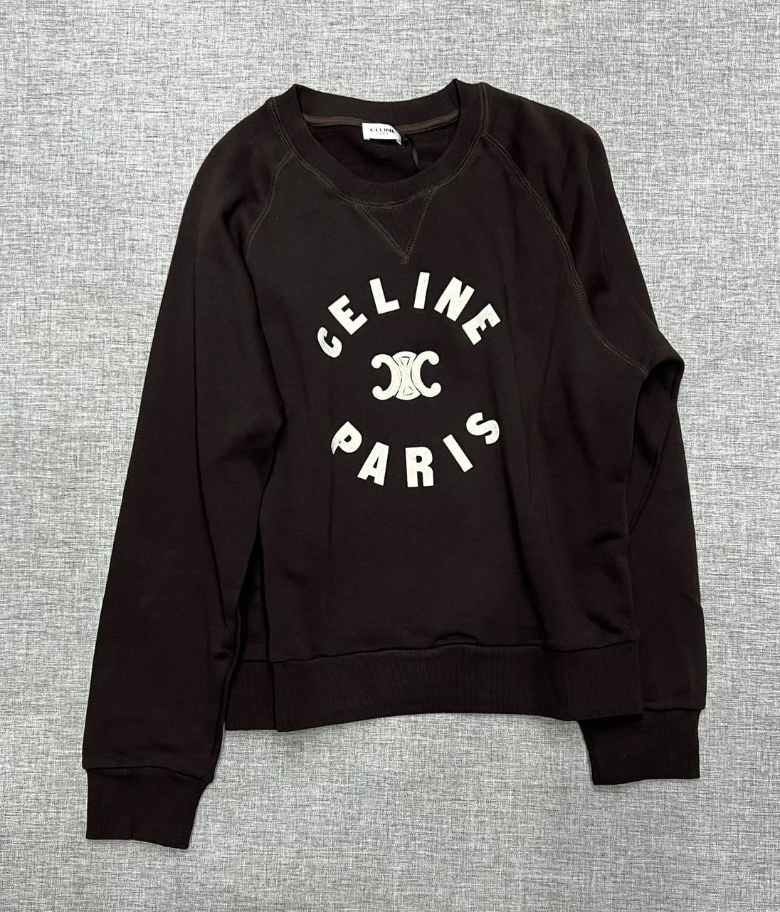 Худи Celine LUX-115199 - это стильный предмет гардероба от известного бренда. Худи выполнено в темно-коричневом цвете с контрастным белым логотипом Celine Paris на груди. Этот предмет одежды идеально подходит для создания повседневных образов.