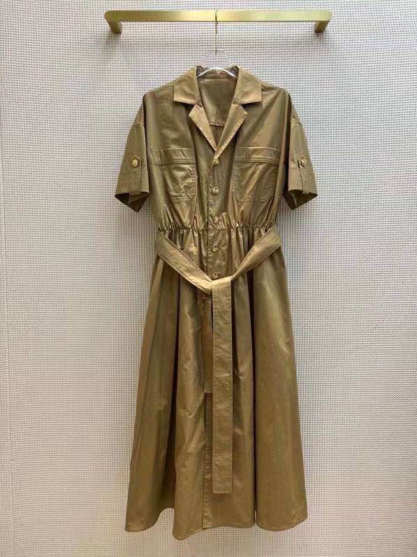 Элегантное платье Celine LUX-67049 в стиле сафари идеально подойдет для создания утонченных образов. Платье имеет прямой силуэт, отложной воротник и пояс, подчеркивающий талию.