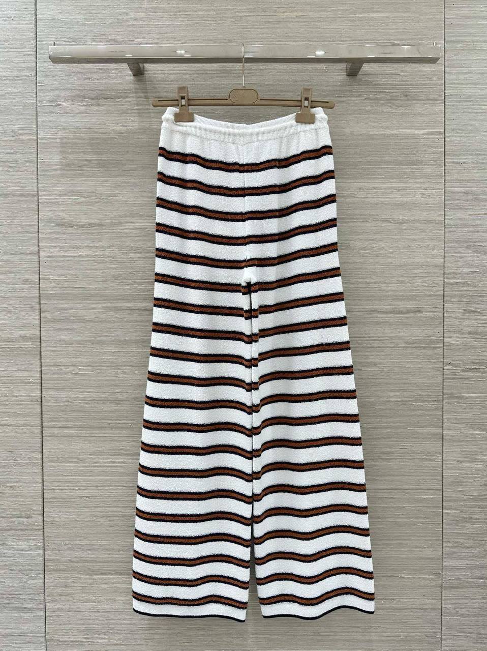 Брюки Chanel LUX-128356 – стильная и современная модель, сочетающая в себе комфорт и элегантность. Брюки выполнены в полоску и имеют прямой крой, что делает их отличным выбором для создания различных образов.