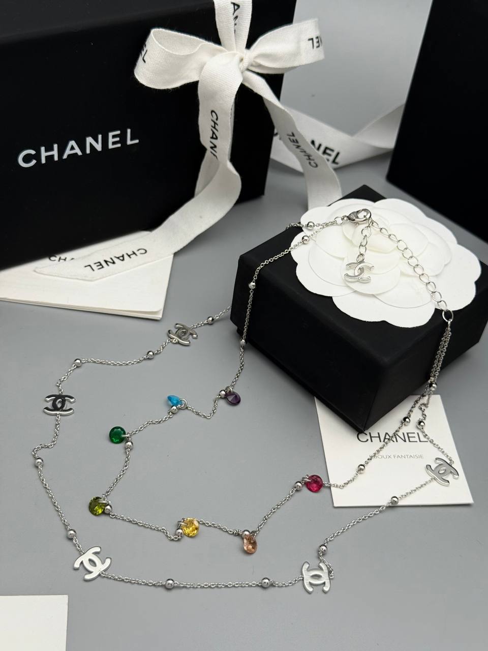 Этот изысканный чокер Chanel станет прекрасным дополнением к вашему образу, подчеркивая индивидуальность и безупречный вкус. Аксессуар выполнен в элегантном стиле, сочетающем в себе классику и современные тенденции.