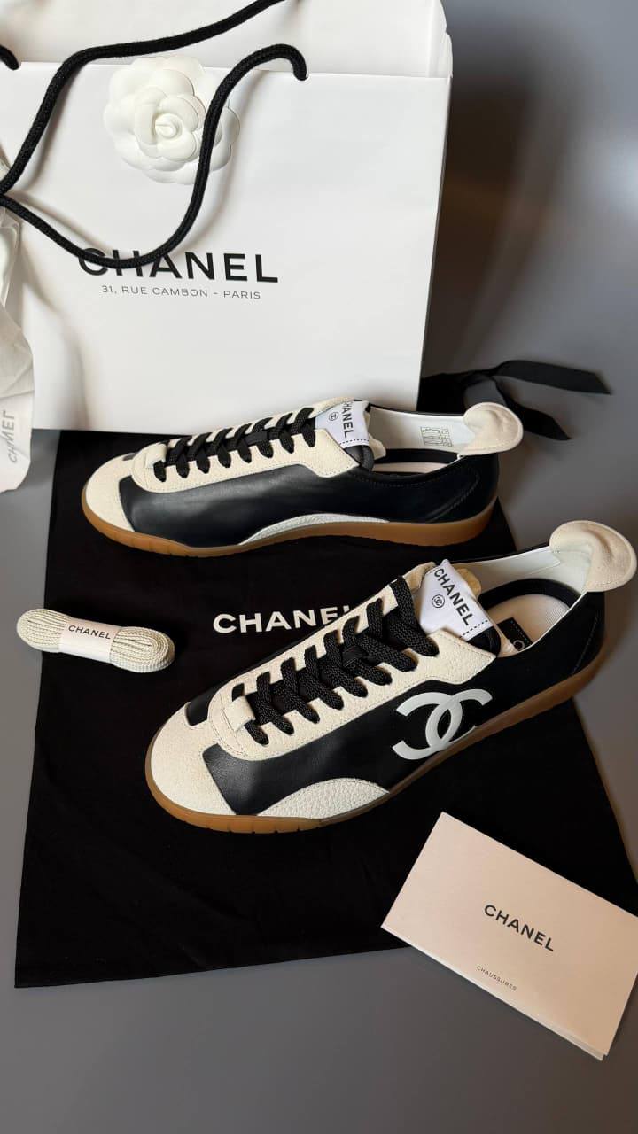 Элегантные кеды Chanel LUX-130640 выполнены в контрастном черно-белом цвете. Это стильная и комфортная обувь, идеально подходящая для создания модных образов.