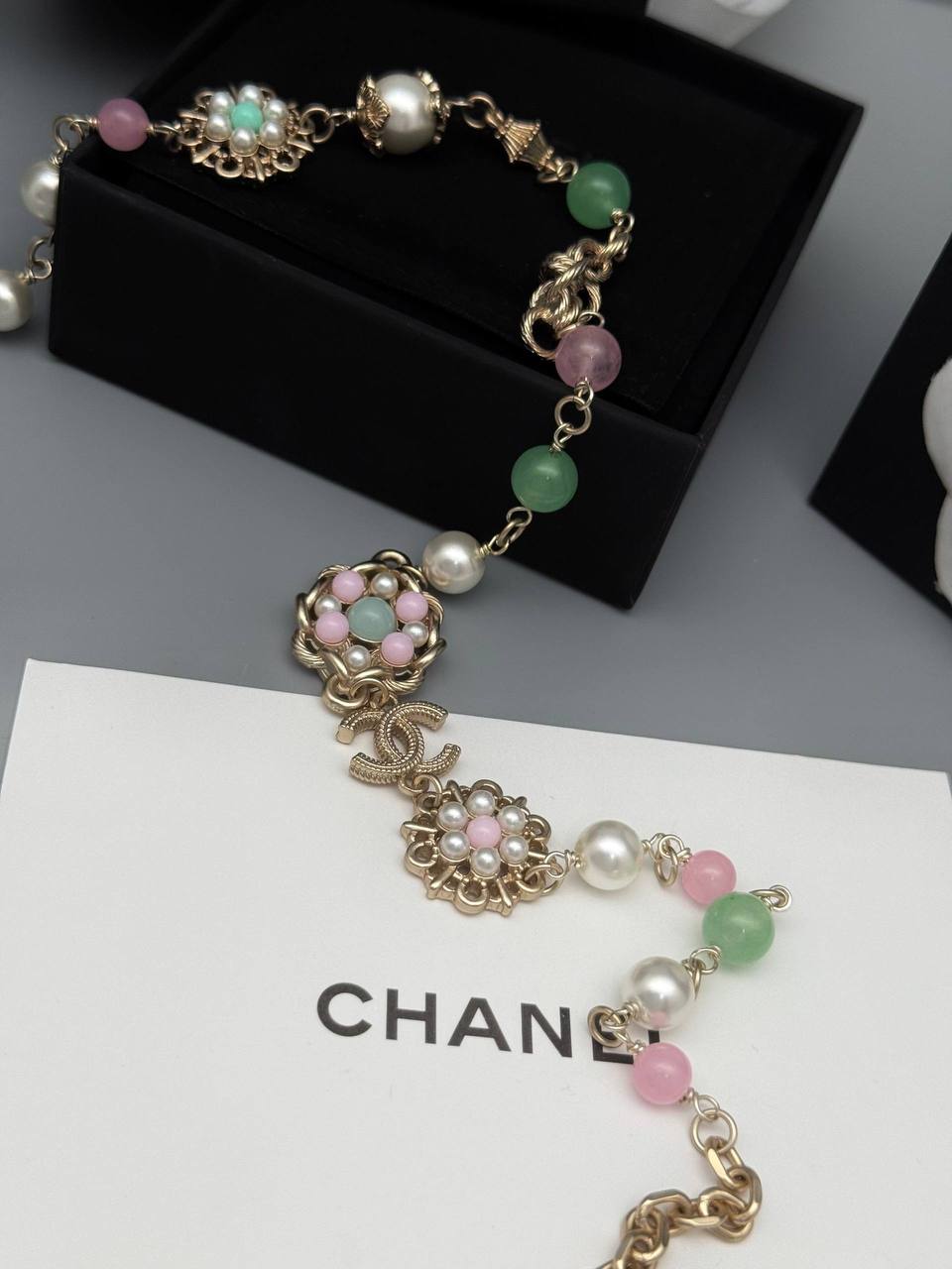 Колье Chanel LUX-124461 — элегантное украшение в стиле бренда, сочетающее в себе изысканность и нежность. Оно станет прекрасным дополнением к любому образу.