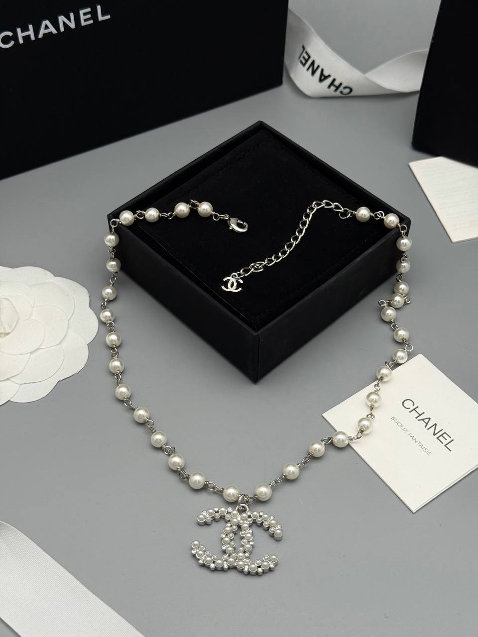 Изящное колье Chanel с имитацией жемчуга – это элегантное украшение, которое добавит шарма и изысканности любому образу. Оно станет отличным дополнением как к вечернему наряду, так и к повседневному образу.