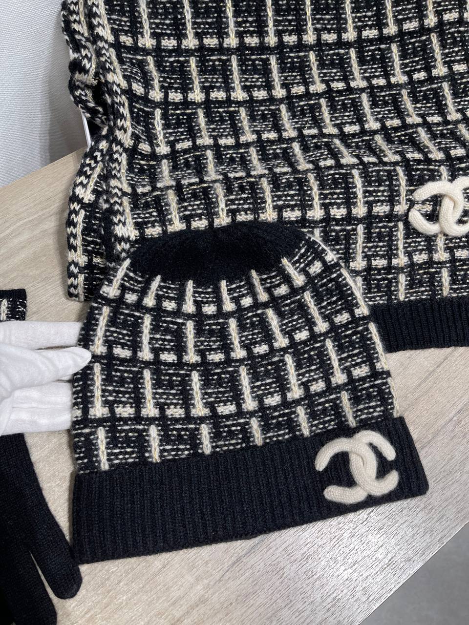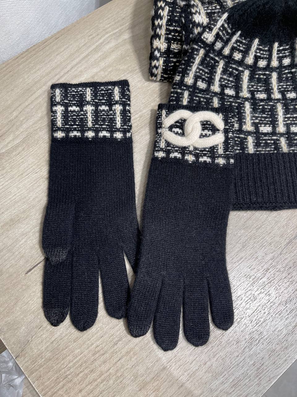 Комплект Chanel – это стильный аксессуар, который станет отличным дополнением к вашему образу в холодное время года. Он сочетает в себе элегантность и практичность.