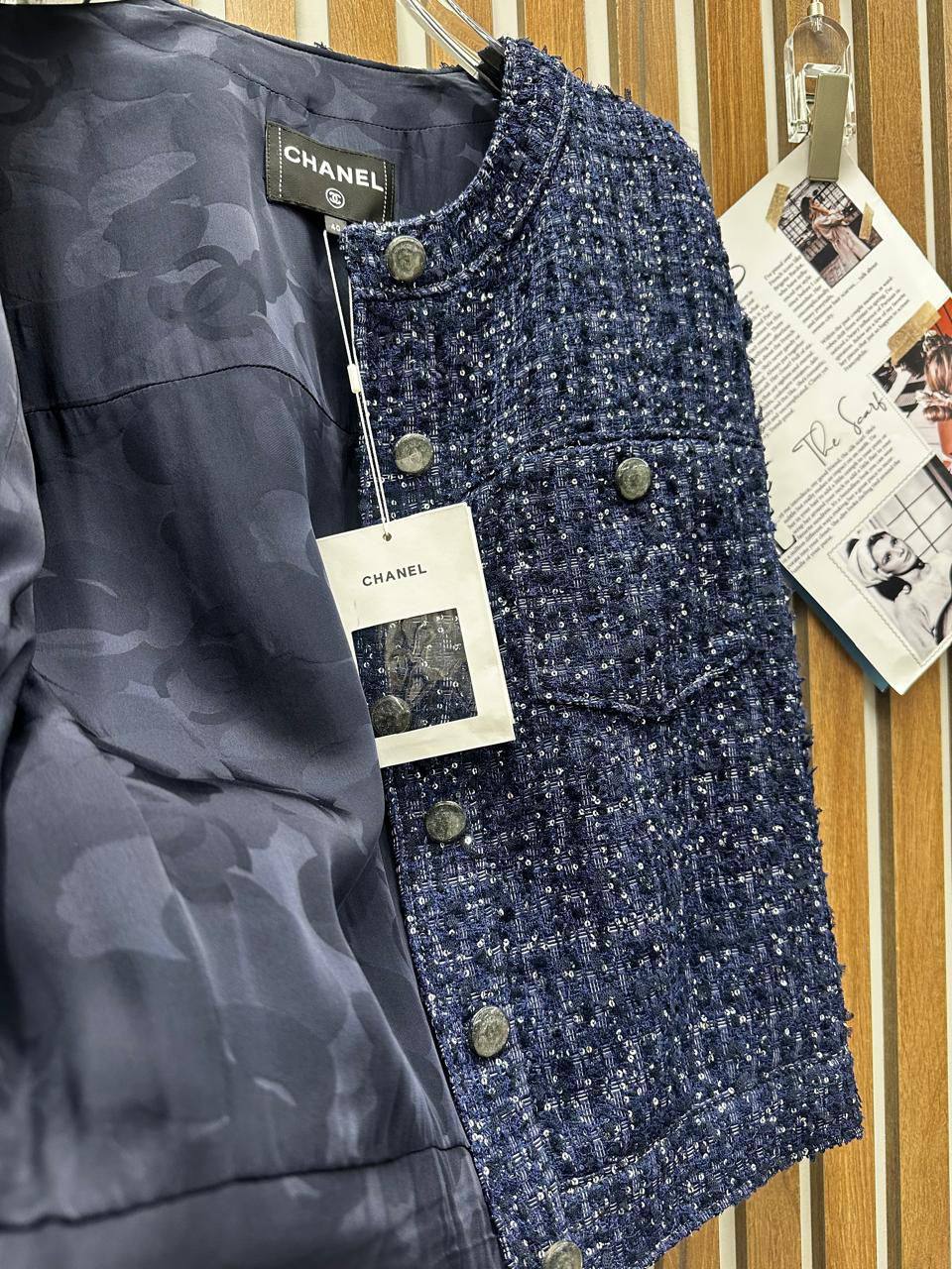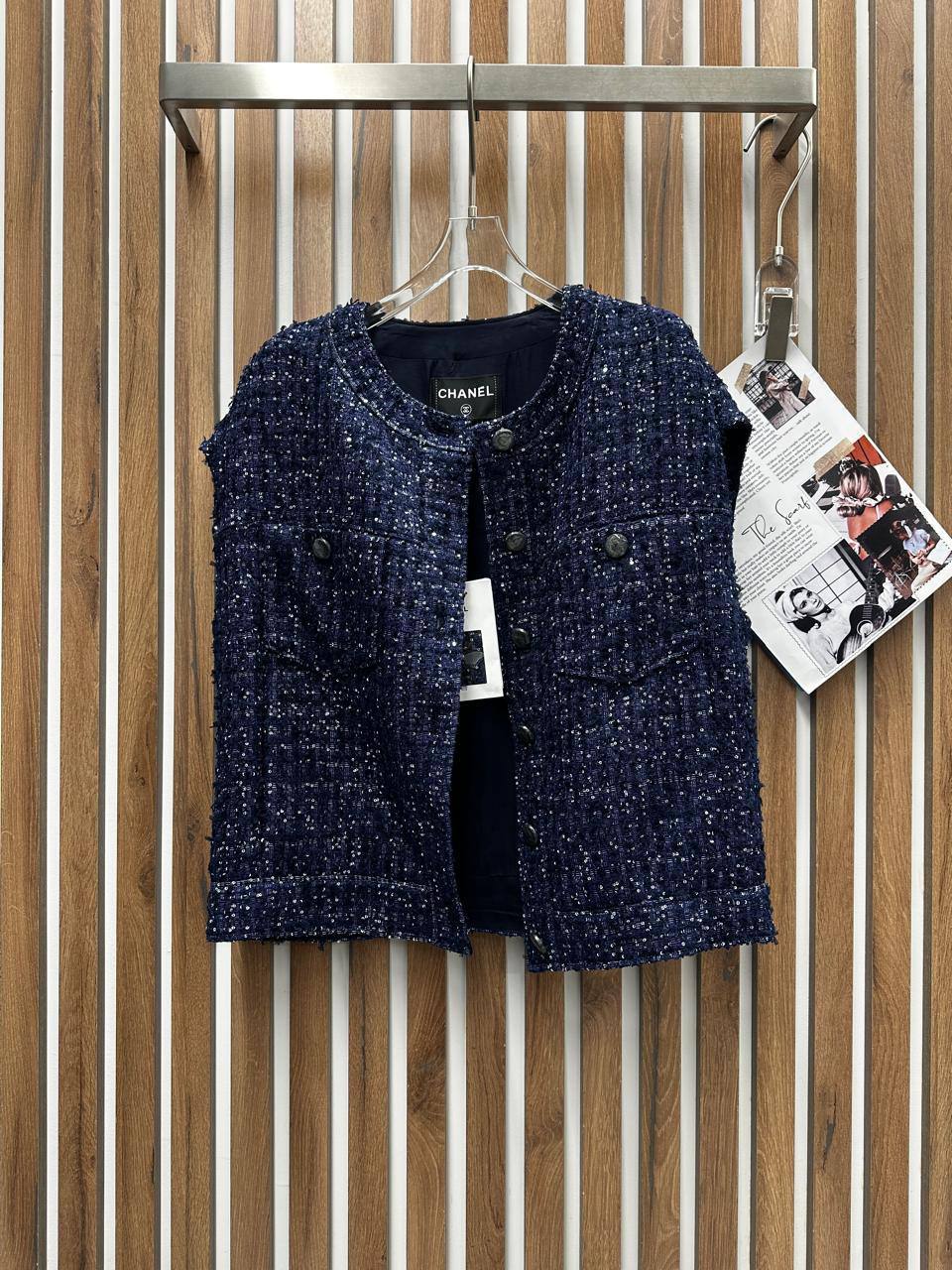 Этот элегантный женский костюм Chanel представляет собой сочетание классики и современного стиля. Костюм идеально подойдет для создания изысканного образа.