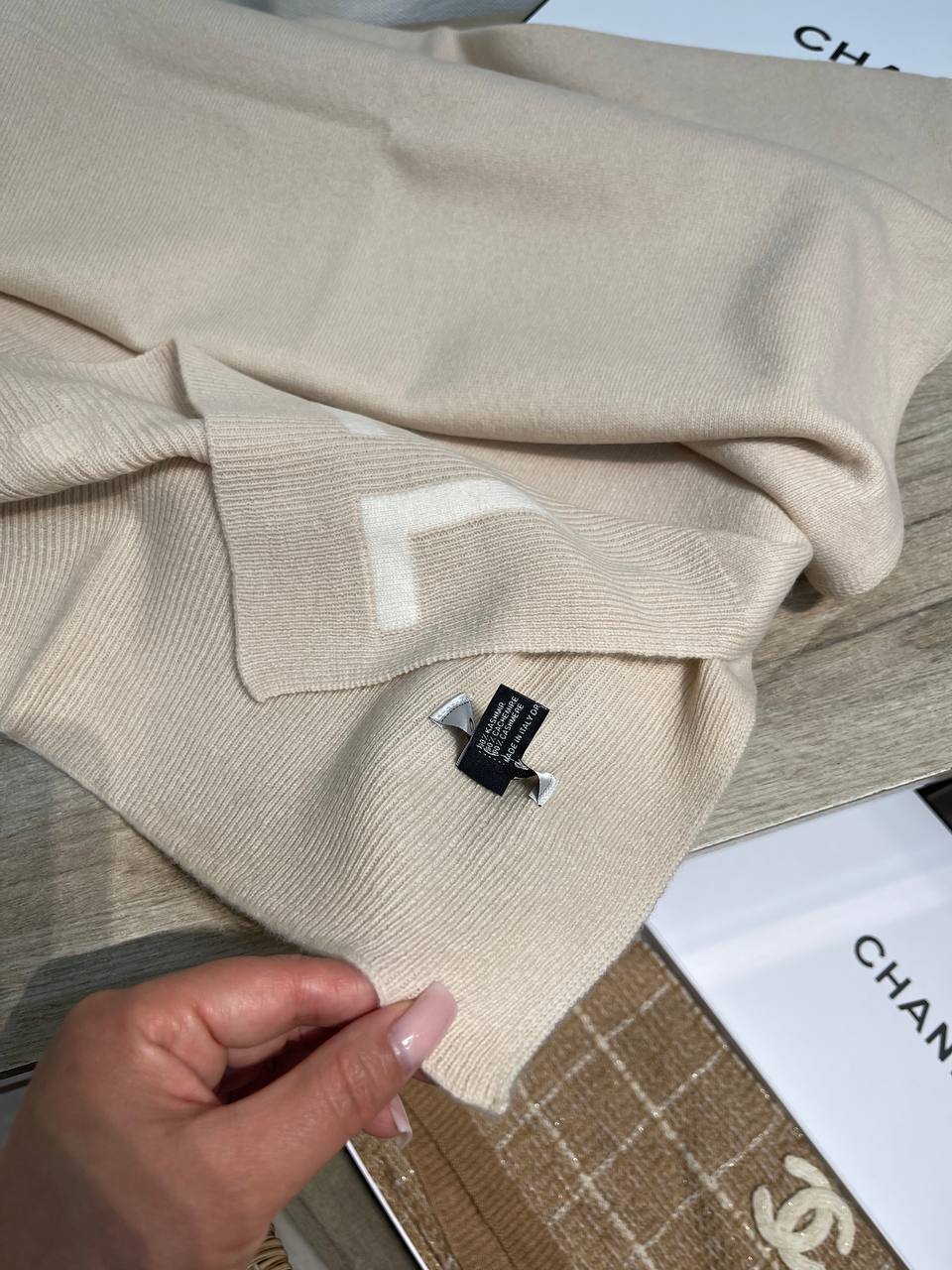 Представлен стильный шарф от Chanel, который добавит элегантности и тепла в ваш образ. Идеальный аксессуар для создания утонченного стиля.