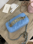 Сумка женская Chanel LUX-84816 представляет собой элегантный аксессуар в фирменном стиле модного дома. Сумка выполнена в нежно-голубом цвете с текстурированной поверхностью. Дизайн включает стеганый узор, узнаваемую фурнитуру, что придает ей изысканный вид и делает ее идеальным дополнением к любому образу.
