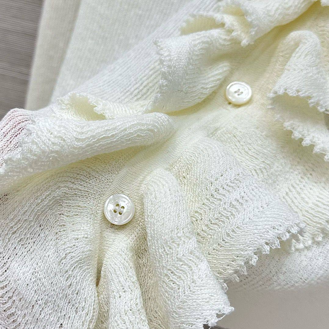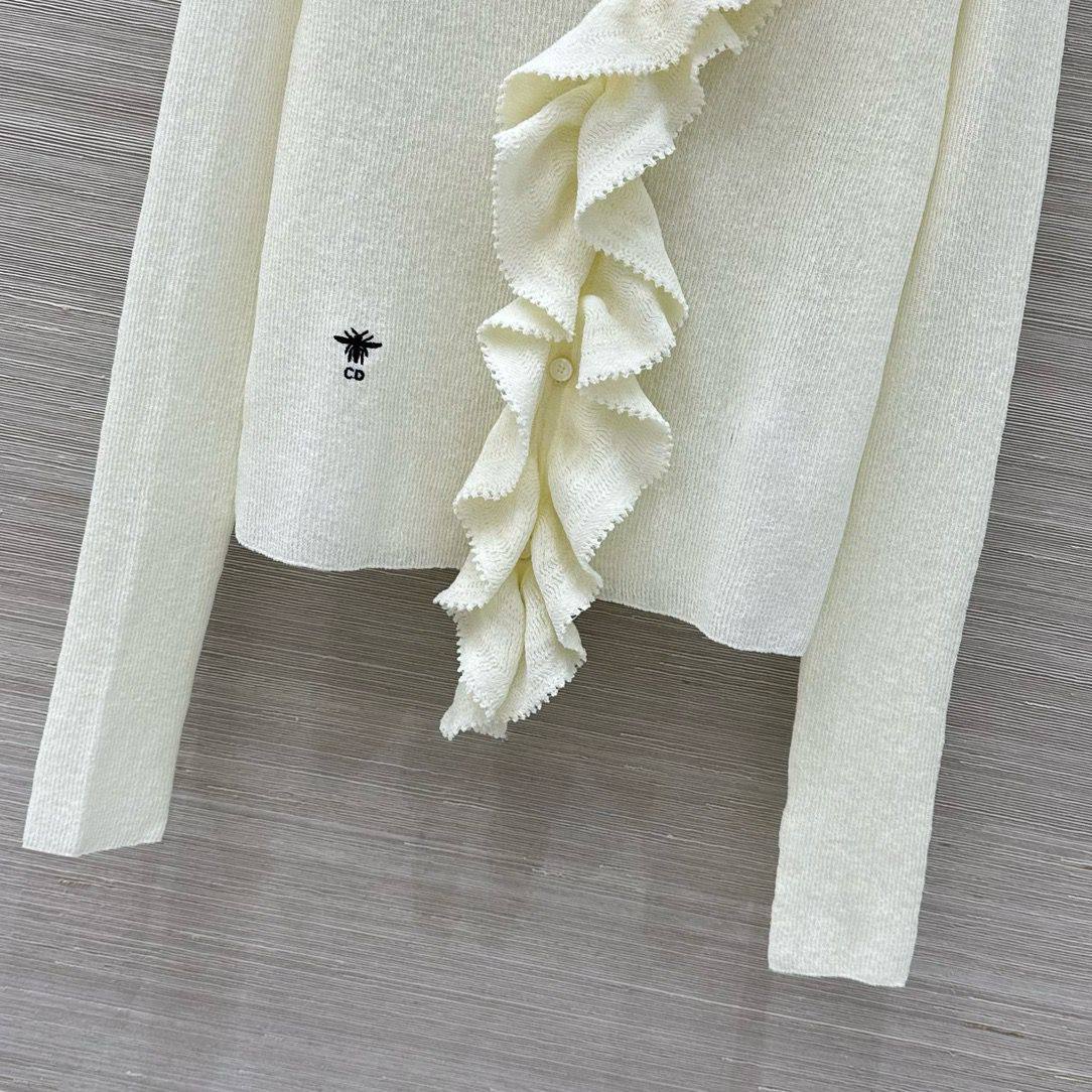 Этот кардиган Christian Dior LUX-126734 - изысканный предмет гардероба, сочетающий в себе элегантность и комфорт. Кардиган выполнен в нежном белом цвете и украшен изящными рюшами.