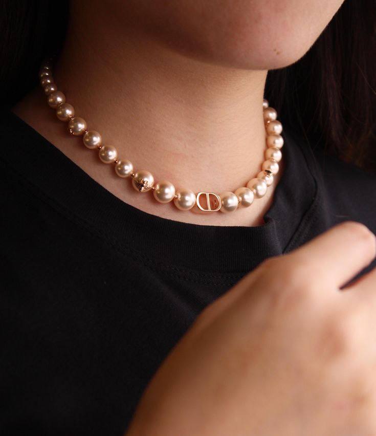Колье Christian Dior – это элегантное украшение, которое подчеркнет ваш изысканный вкус. Жемчужные бусины и золотистый логотип создают неповторимый образ, идеально подходящий для особых случаев.