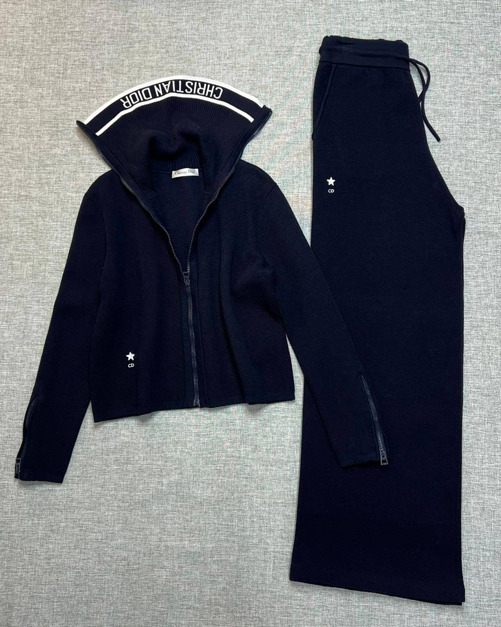 Стильный спортивный костюм Christian Dior LUX-125052 выполнен в классическом спортивном стиле. Костюм состоит из укороченной куртки на молнии и прямых брюк. Отличный выбор для комфортного и модного образа.