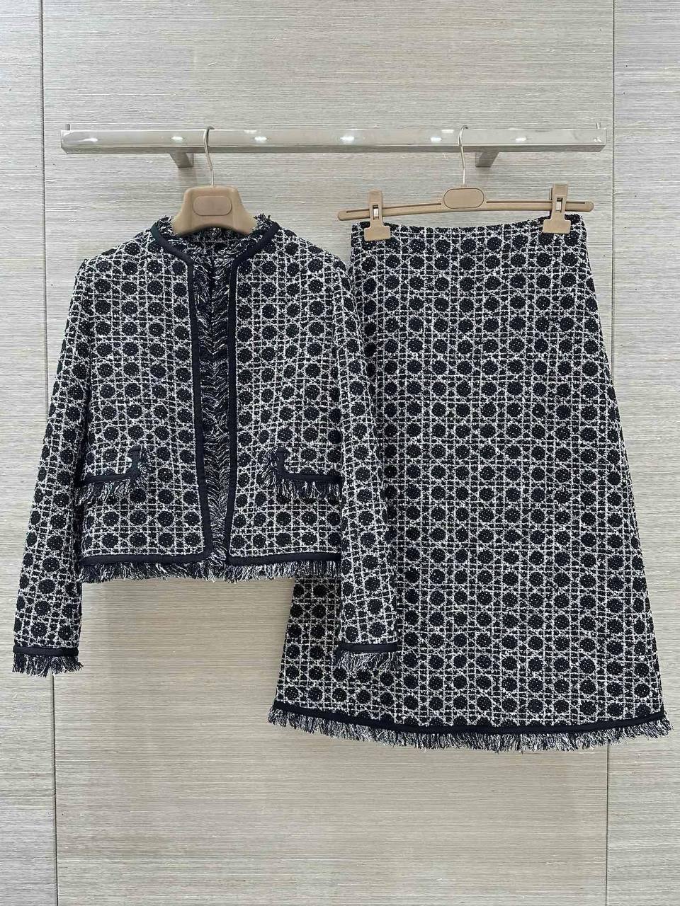Представляем элегантный женский костюм от Christian Dior, состоящий из жакета и юбки. Этот стильный комплект идеально подходит для создания изысканных образов.