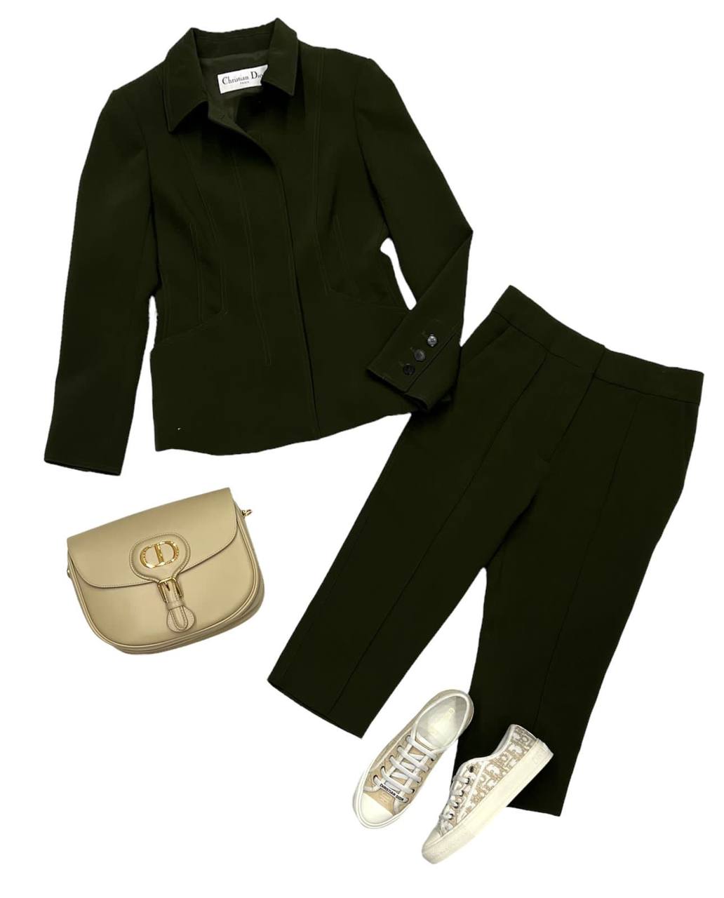 Элегантный женский костюм от Christian Dior станет прекрасным дополнением к вашему гардеробу, подчеркивая изысканный вкус и стиль. Костюм идеально подходит для создания деловых и повседневных образов.