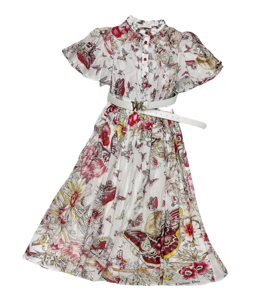 Christian Dior LUX-67164 – это элегантное платье с цветочным и бабочковым принтом, идеальное для создания женственного и романтичного образа. Модель отличается лёгким силуэтом и воздушными рукавами.