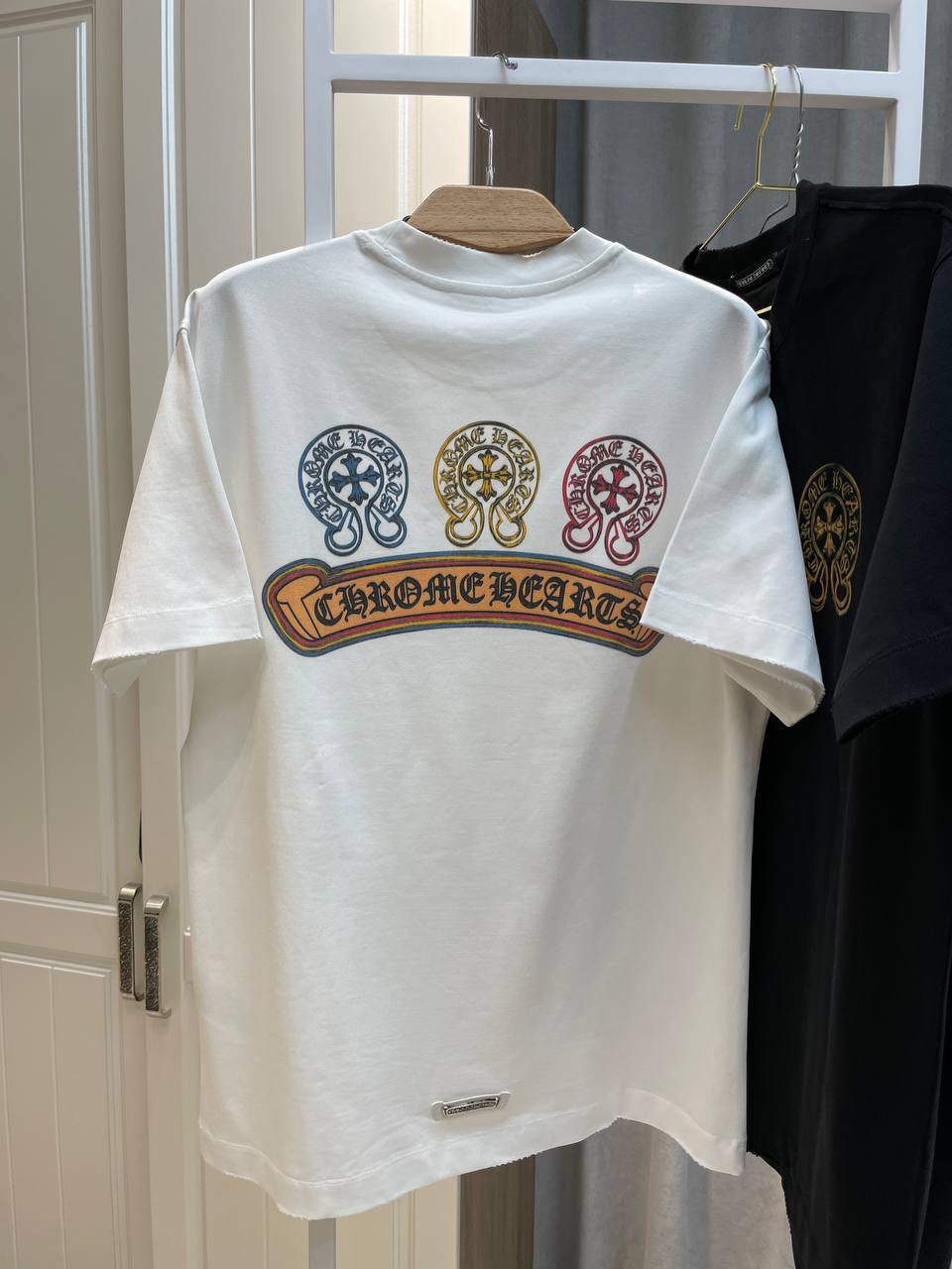 На сайте указан международный (INT) и европейский (EU) размеры одежды бренда CHROME HEARTS.