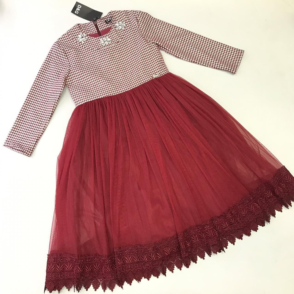 Это изысканное детское платье Dolce & Gabbana LUX-20986 сочетает в себе классический узор "гусиная лапка" на лифе и рукавах с пышной юбкой из бордового тюля. Декоративные элементы из кристаллов вокруг выреза горловины добавляют нарядности. Это платье станет прекрасным выбором для особых случаев, праздников или торжественных мероприятий, подчеркивая утонченный вкус маленькой модницы.