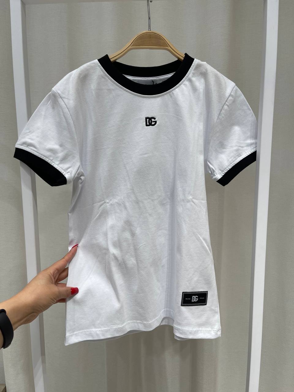 Стильная футболка от Dolce & Gabbana - это сочетание комфорта и современного дизайна. Модель выполнена в классическом стиле с контрастной отделкой. Идеальный выбор для создания повседневного образа.