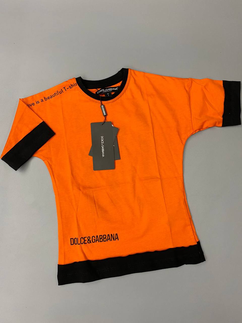 Футболка Dolce & Gabbana LUX-66158 - стильная модель с оригинальным дизайном. Яркий оранжевый цвет в сочетании с черными деталями создает эффектный контраст. Отличный выбор для тех, кто ценит комфорт и стиль.