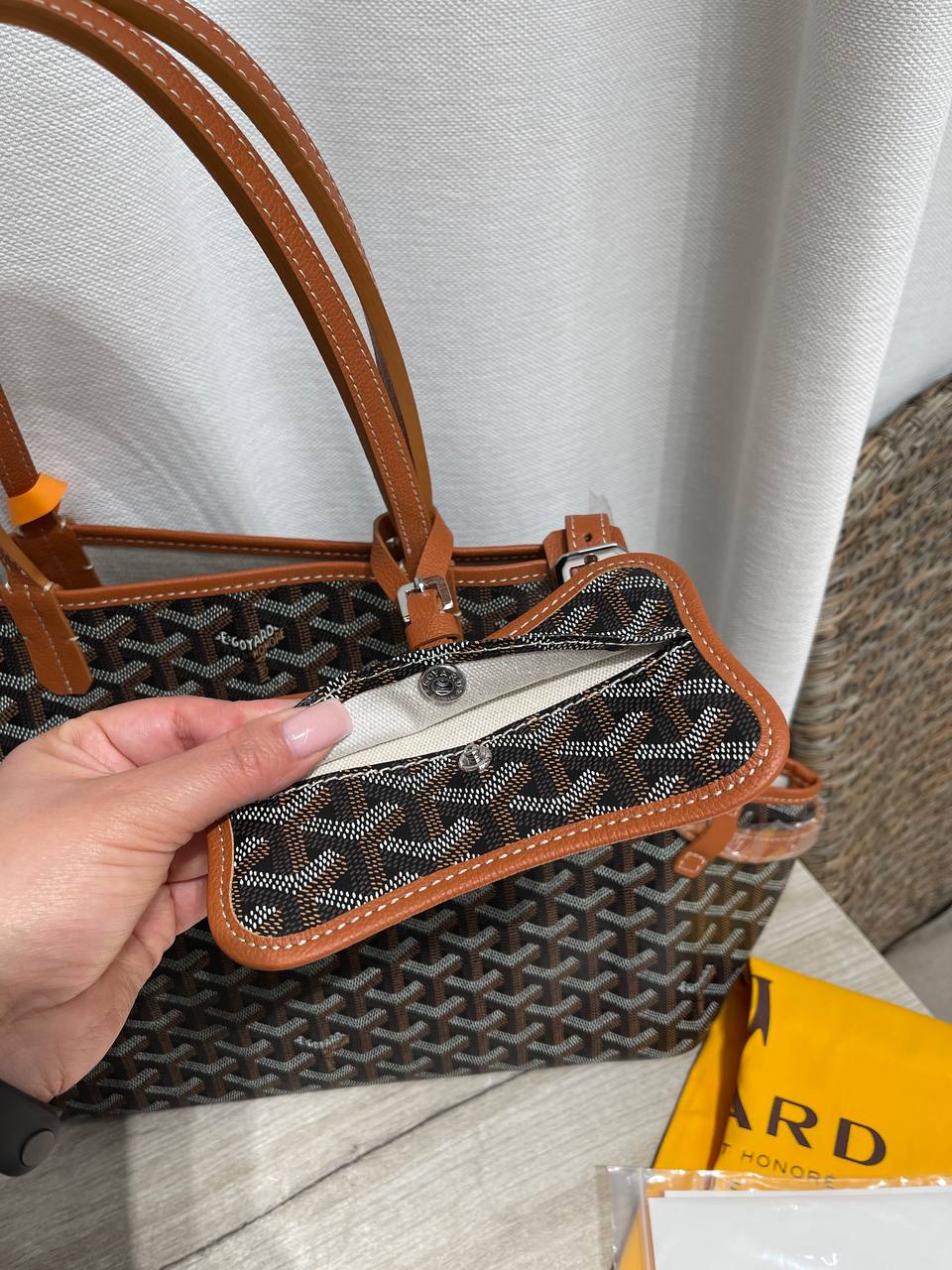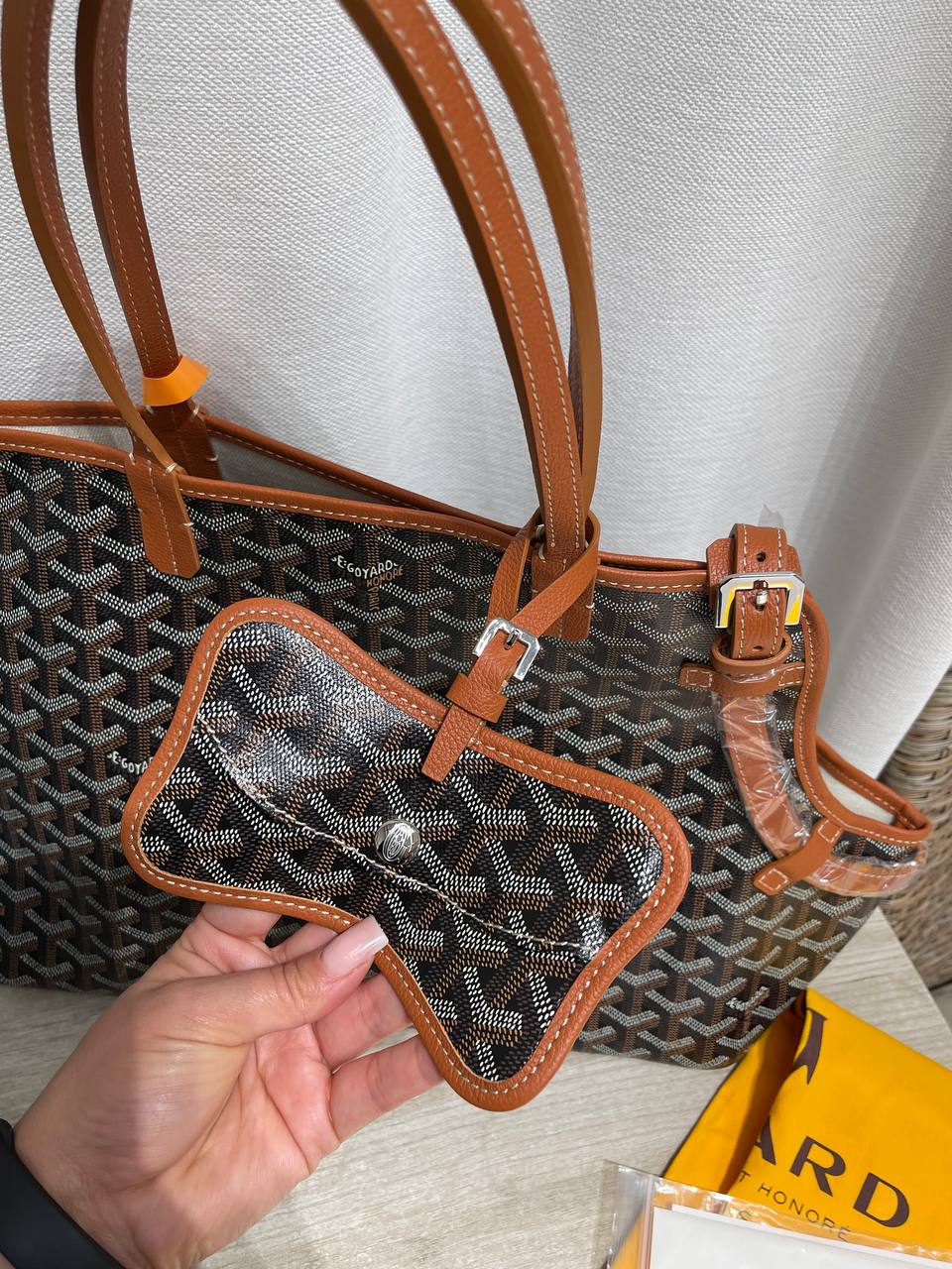 Изысканная переноска для животных от Goyard – стильный и функциональный аксессуар для комфортных путешествий с вашим питомцем. Она сочетает в себе узнаваемый дизайн бренда и практичность, обеспечивая безопасность и удобство.