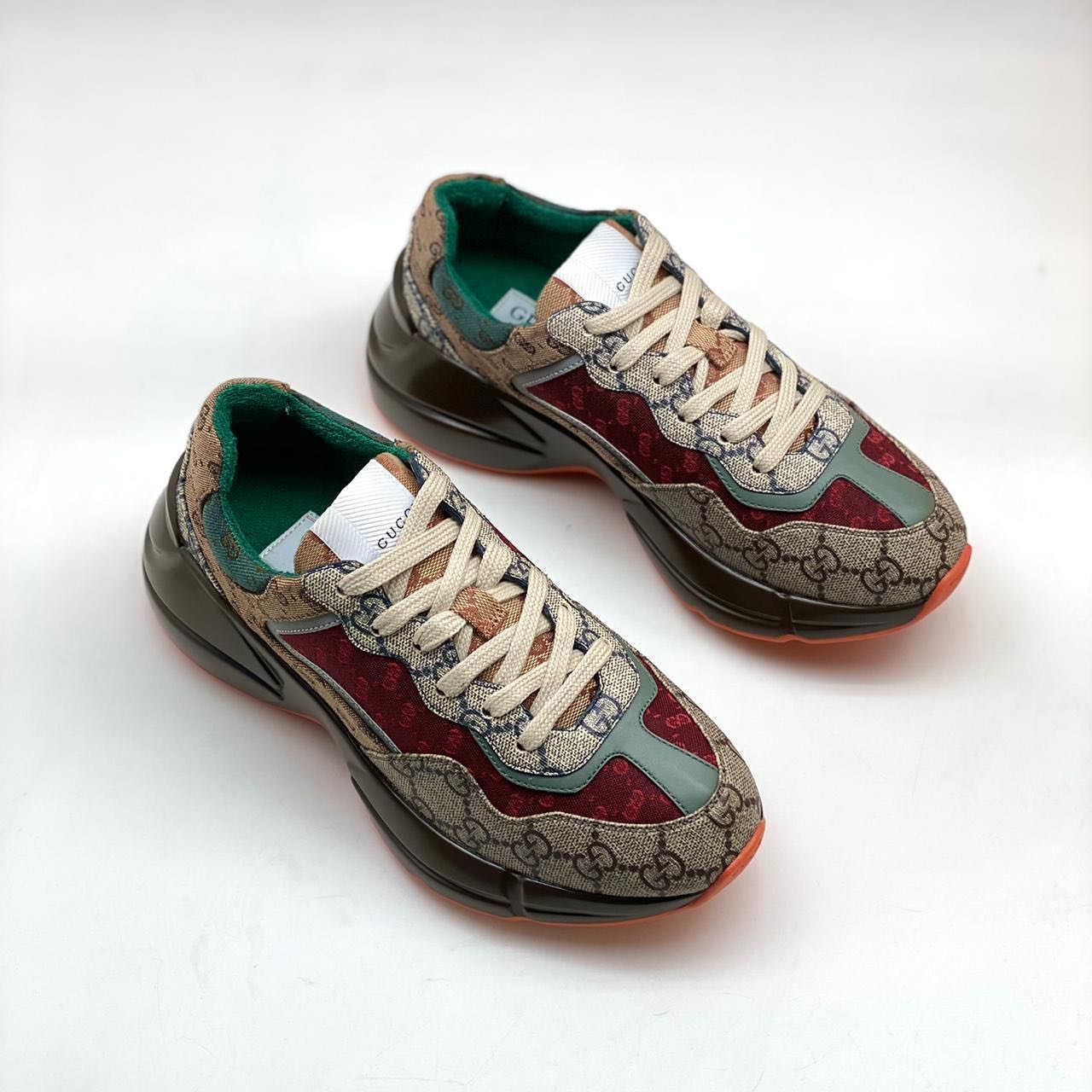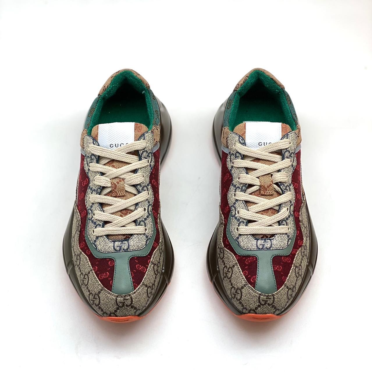 Gucci кроссовки женские LUX-35569 – это яркое сочетание классического дизайна Gucci с современными трендами. Эти кроссовки отличаются узнаваемым принтом бренда, дополненным контрастными вставками бордового и зеленого цвета, что придает им уникальный стиль. Массивная подошва обеспечивает комфорт и устойчивость, а продуманные детали делают их идеальным выбором для модниц.