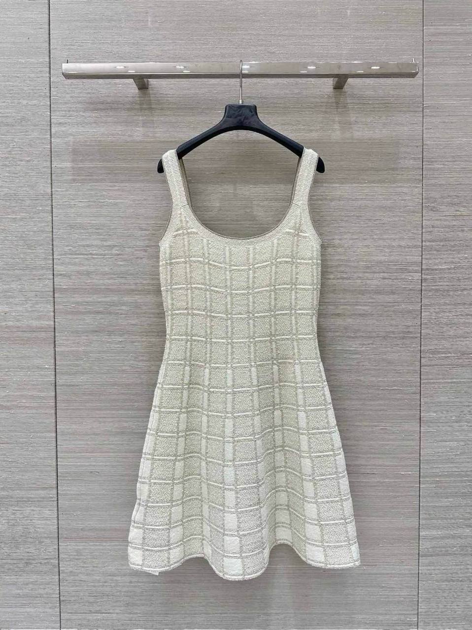 Сарафан Gucci LUX-114678 – воплощение элегантности и стиля. Этот сарафан выполнен в светлой цветовой гамме с текстурным узором, представляющим собой сочетание квадратов. Модель с круглым вырезом и тонкими бретелями, акцентирована пуговицами, добавляющими изысканности.