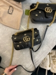 Сумка женская Gucci LUX-101580, представленная на изображении, – это изысканный аксессуар черного цвета в стеганом дизайне с золотистой фурнитурой. Сумка выполнена в классическом стиле и оснащена цепочкой.