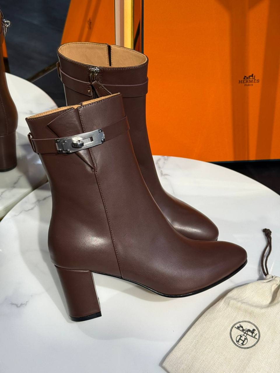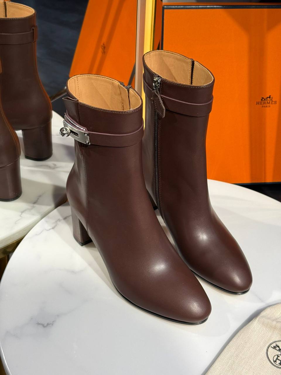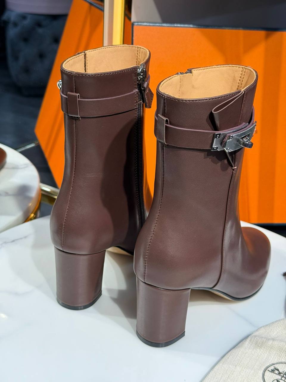 Ботильоны Hermes LUX-128549 - это элегантная и стильная обувь, идеально подходящая для создания изысканного образа. Они сочетают в себе классический дизайн и современные акценты.