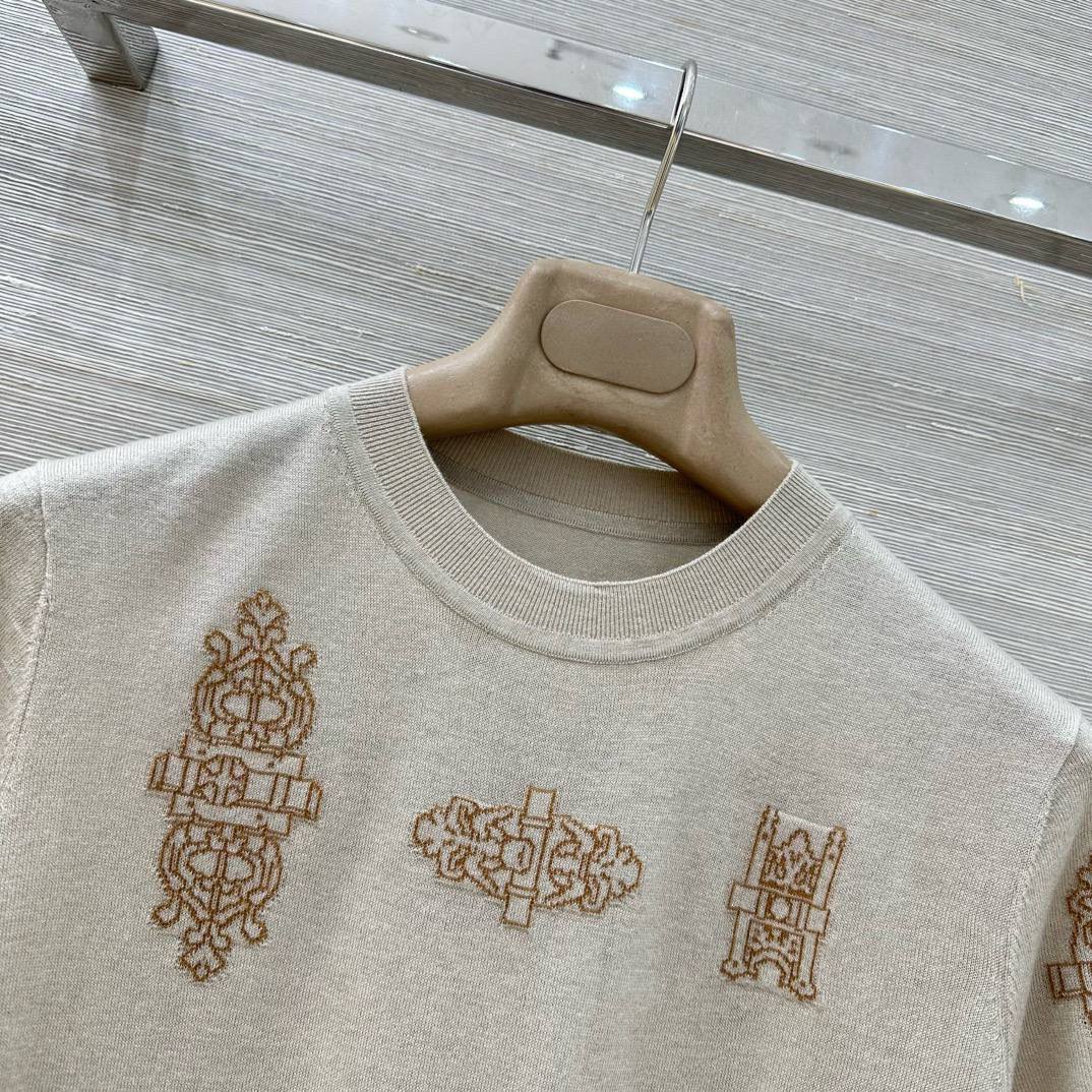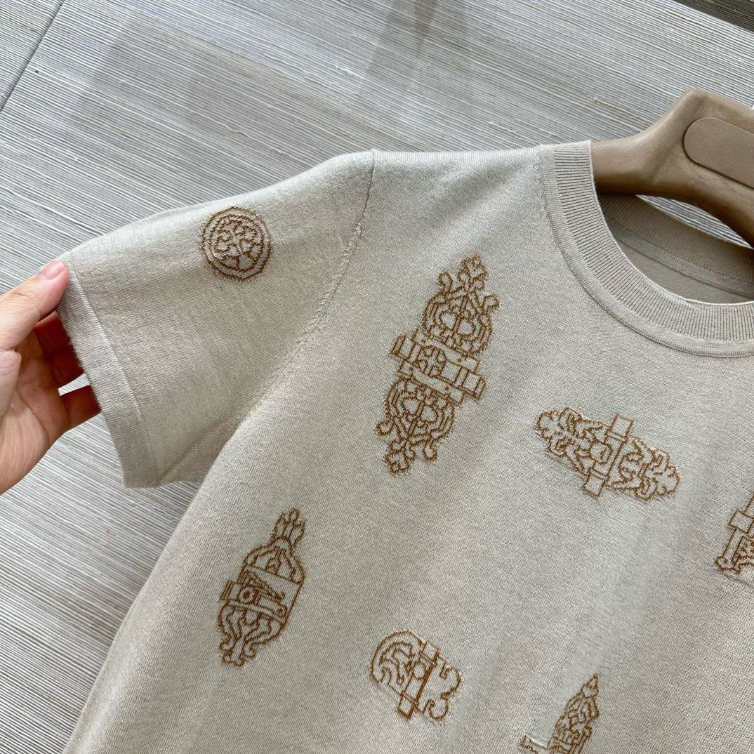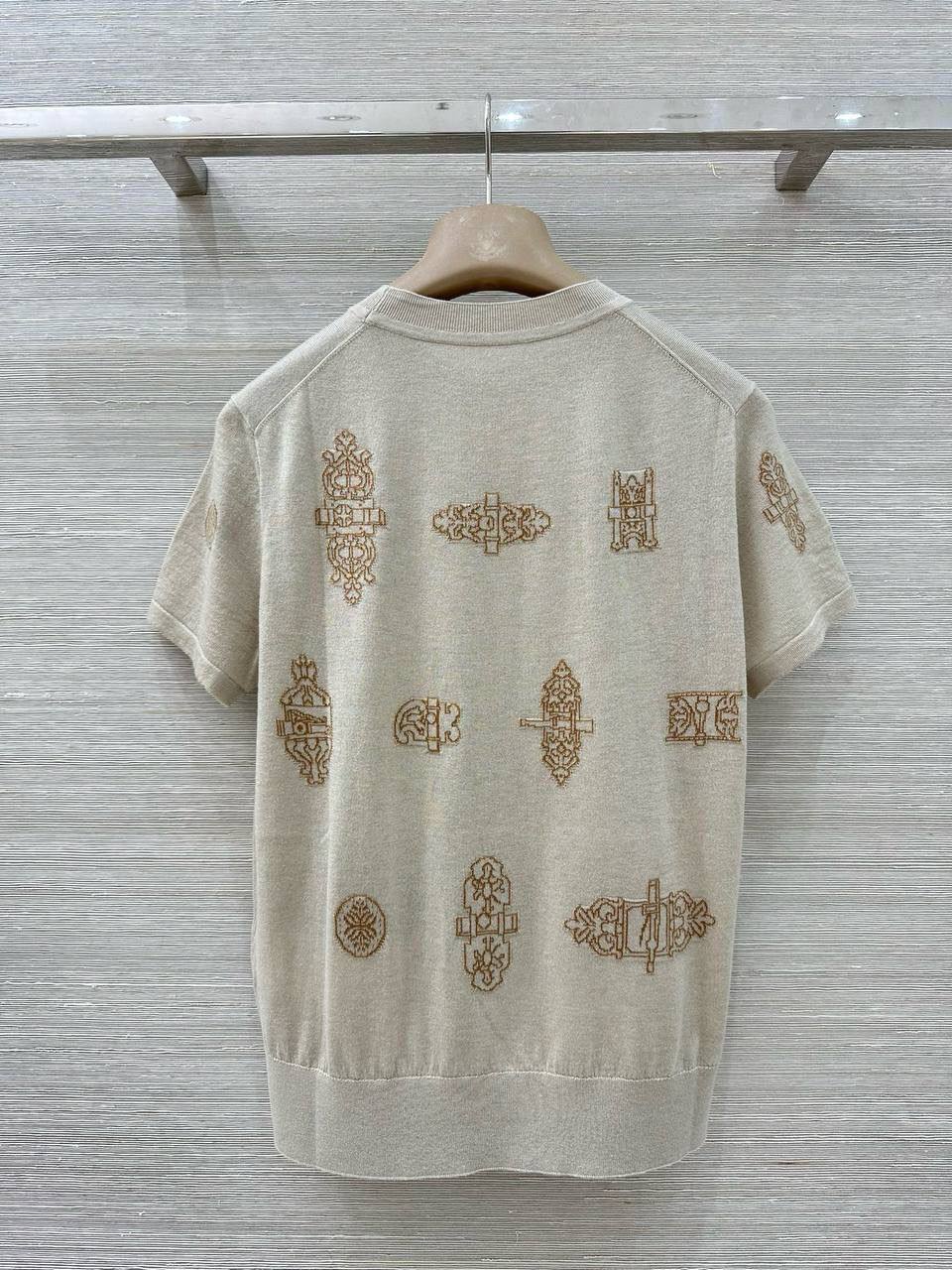 Изысканная футболка с короткими рукавами от Hermes – это элегантный выбор для создания утонченного образа. Уникальный дизайн с декоративными элементами придает ей особый шарм и неповторимость.