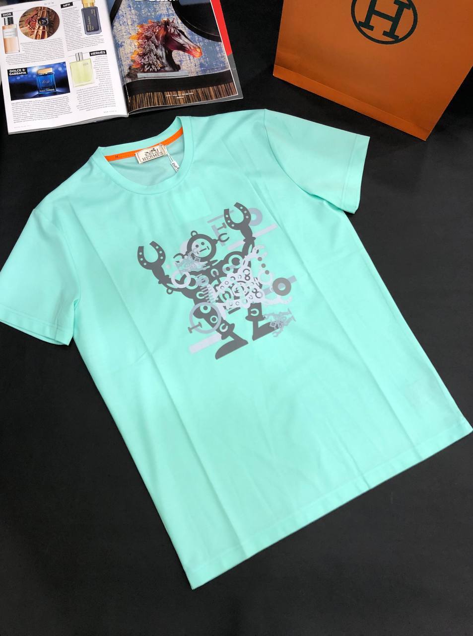Мужская футболка Hermes LUX-66043 – стильный выбор для повседневного гардероба. Яркий дизайн и комфортный крой делают её идеальной для создания непринужденного образа.