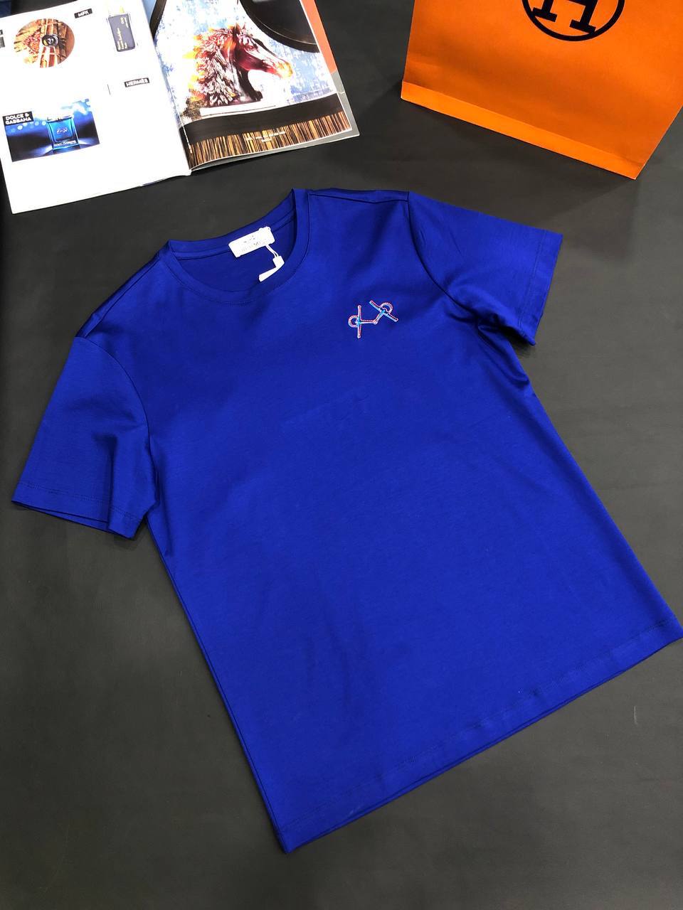 Мужская футболка Hermes – это стильная и комфортная одежда для повседневной носки. Яркий синий цвет и лаконичный дизайн делают эту футболку отличным выбором для создания разнообразных образов.