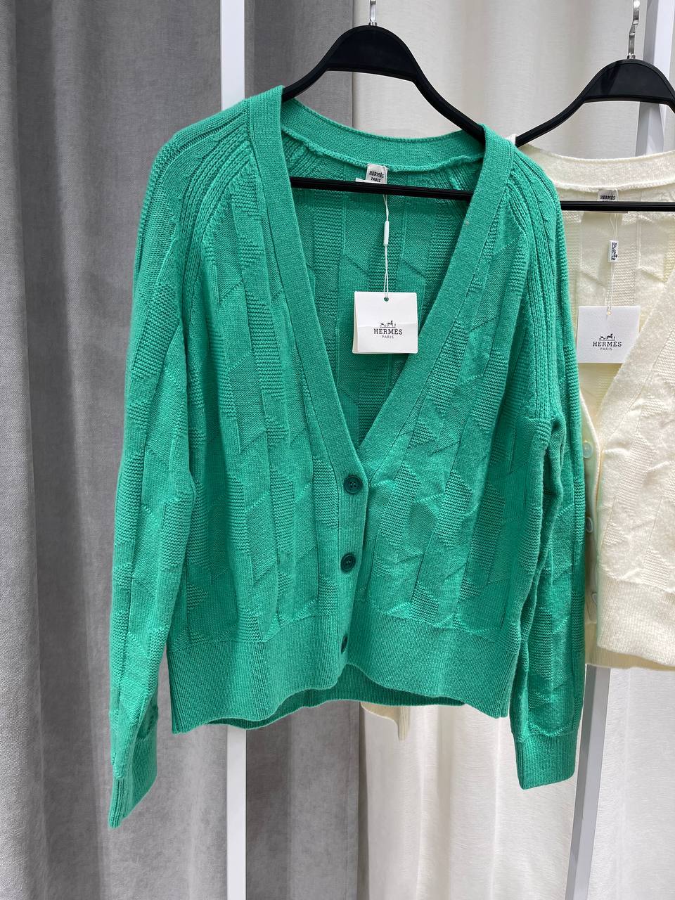 На изображении представлен стильный кардиган от Hermes. Этот яркий элемент гардероба станет отличным дополнением к вашему образу.