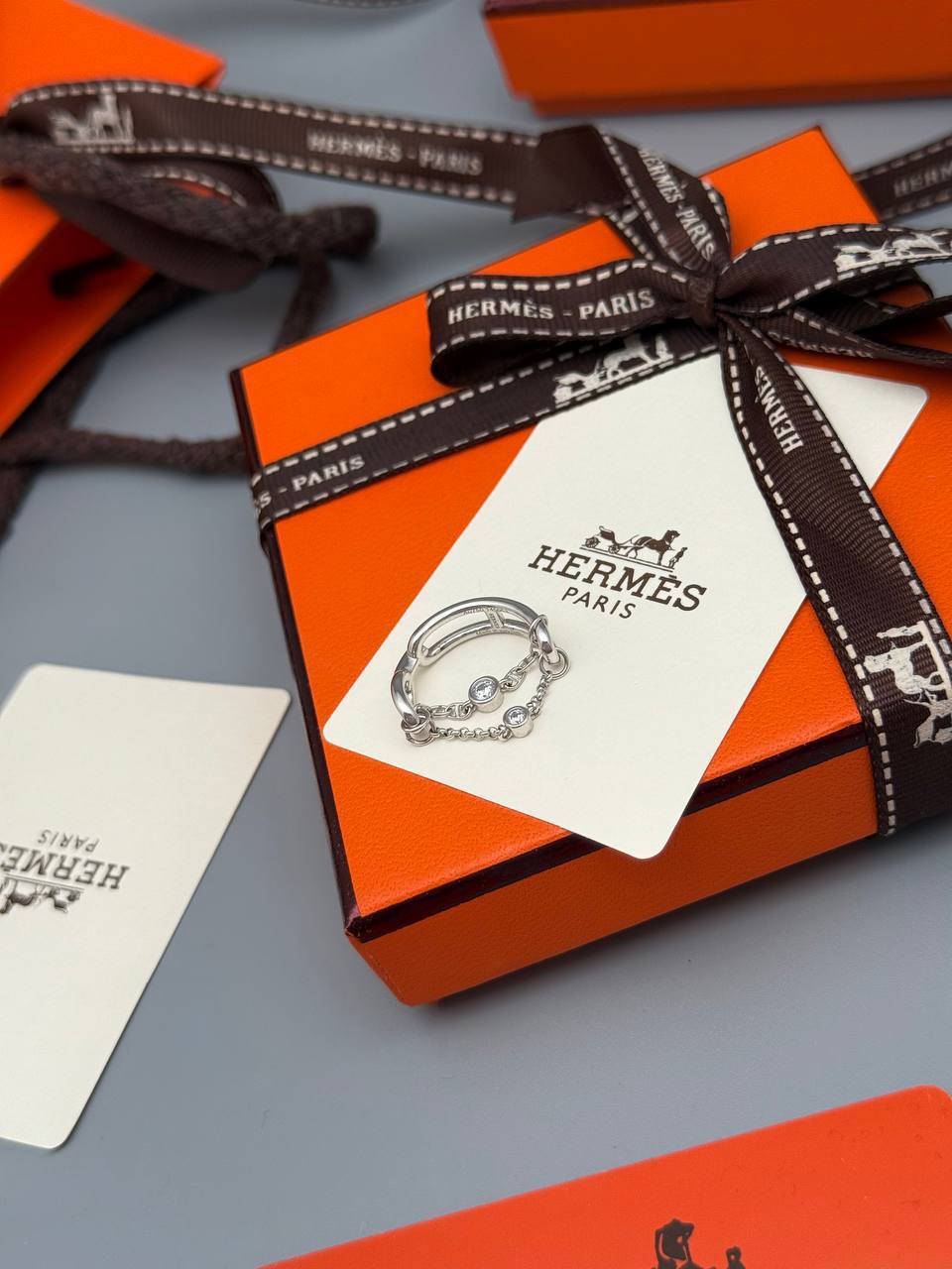 Изысканное кольцо Hermes LUX-126035 представляет собой элегантный аксессуар, который подчеркнет ваш неповторимый стиль. Это утонченное украшение идеально дополнит как повседневный, так и вечерний образ.