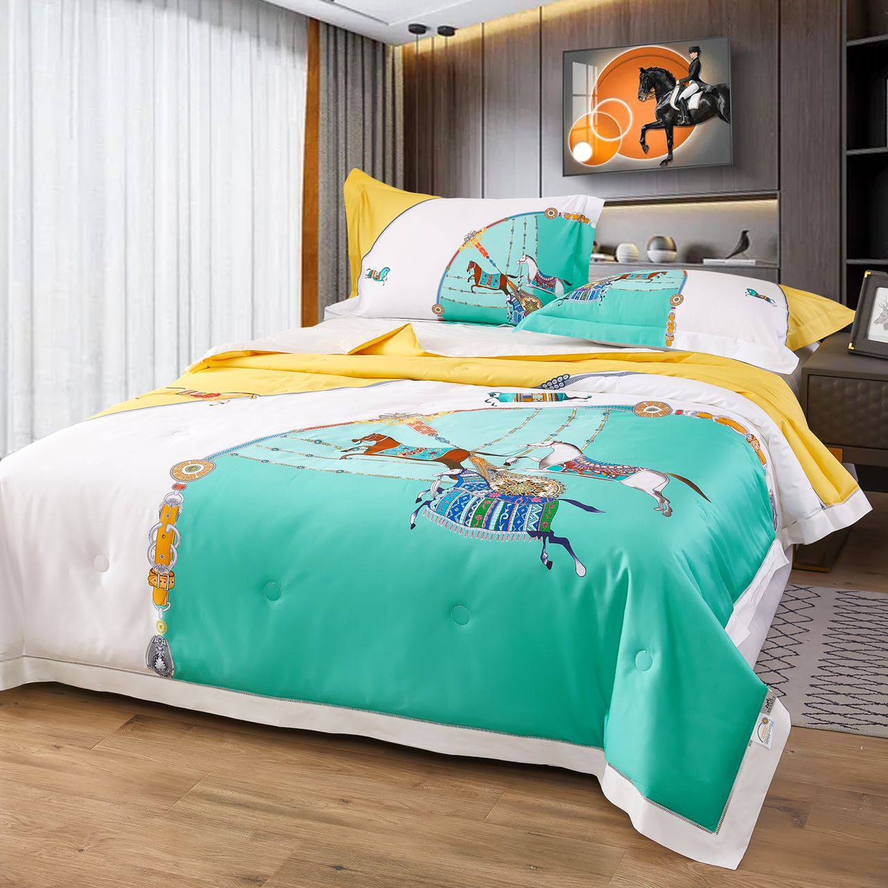 Комплект постельного белья Hermes СЕМЕЙНЫЙ LUX-67275 — это роскошное украшение для вашей спальни, создающее атмосферу изысканности и комфорта. Комплект выполнен в ярких, но при этом спокойных тонах, с оригинальным принтом.