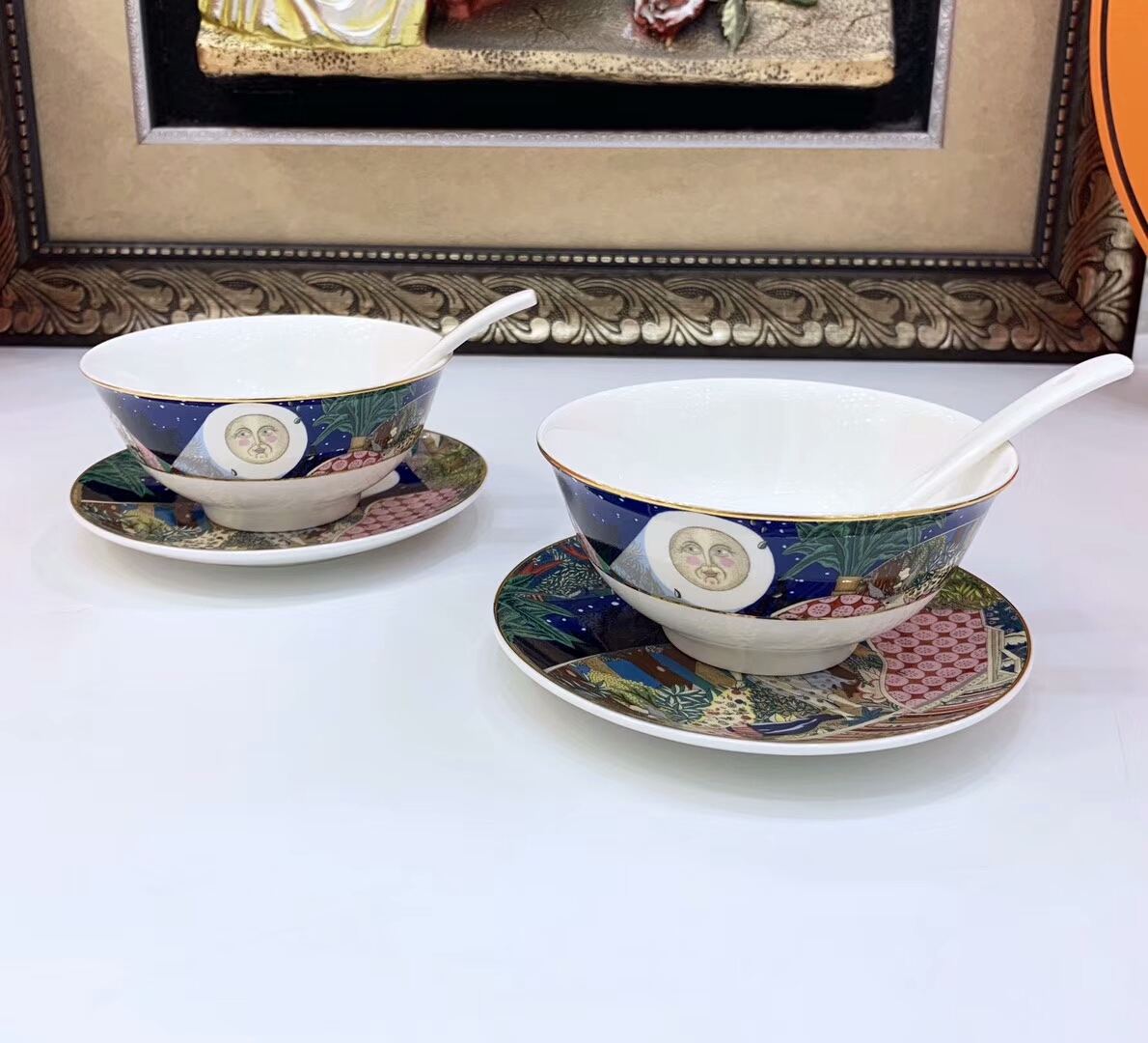 В наборе 10 предметов: 2 тарелки, 2 пиалы, 2 чашки, 2 блюдца, 2 ложки. Качество 1:1 к оригиналу.