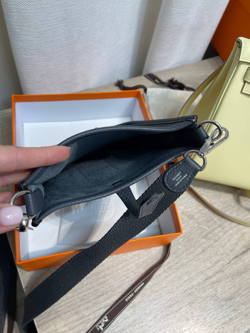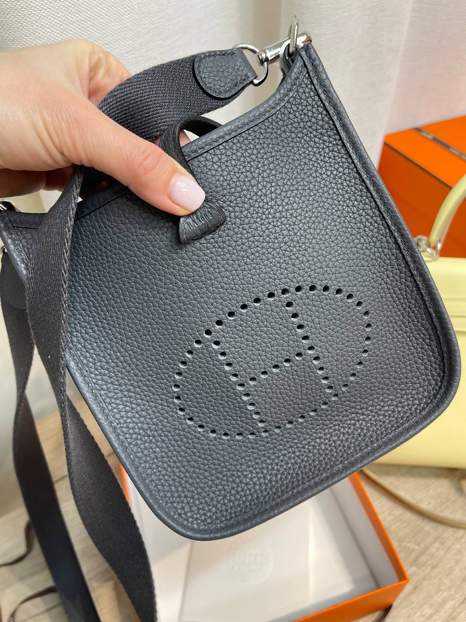 Стильная женская сумка через плечо Hermes Evelyne mini - это элегантный аксессуар, который подчеркнет ваш безупречный вкус. Идеально подходит для повседневного использования, добавляя изысканности любому образу.