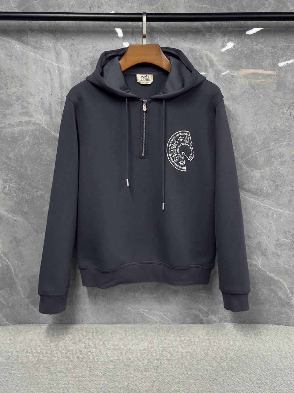 Толстовка Hermes LUX-129347 - это стильный выбор для создания комфортного и модного образа. Эта модель с капюшоном и застежкой-молнией идеально подходит для повседневной носки.