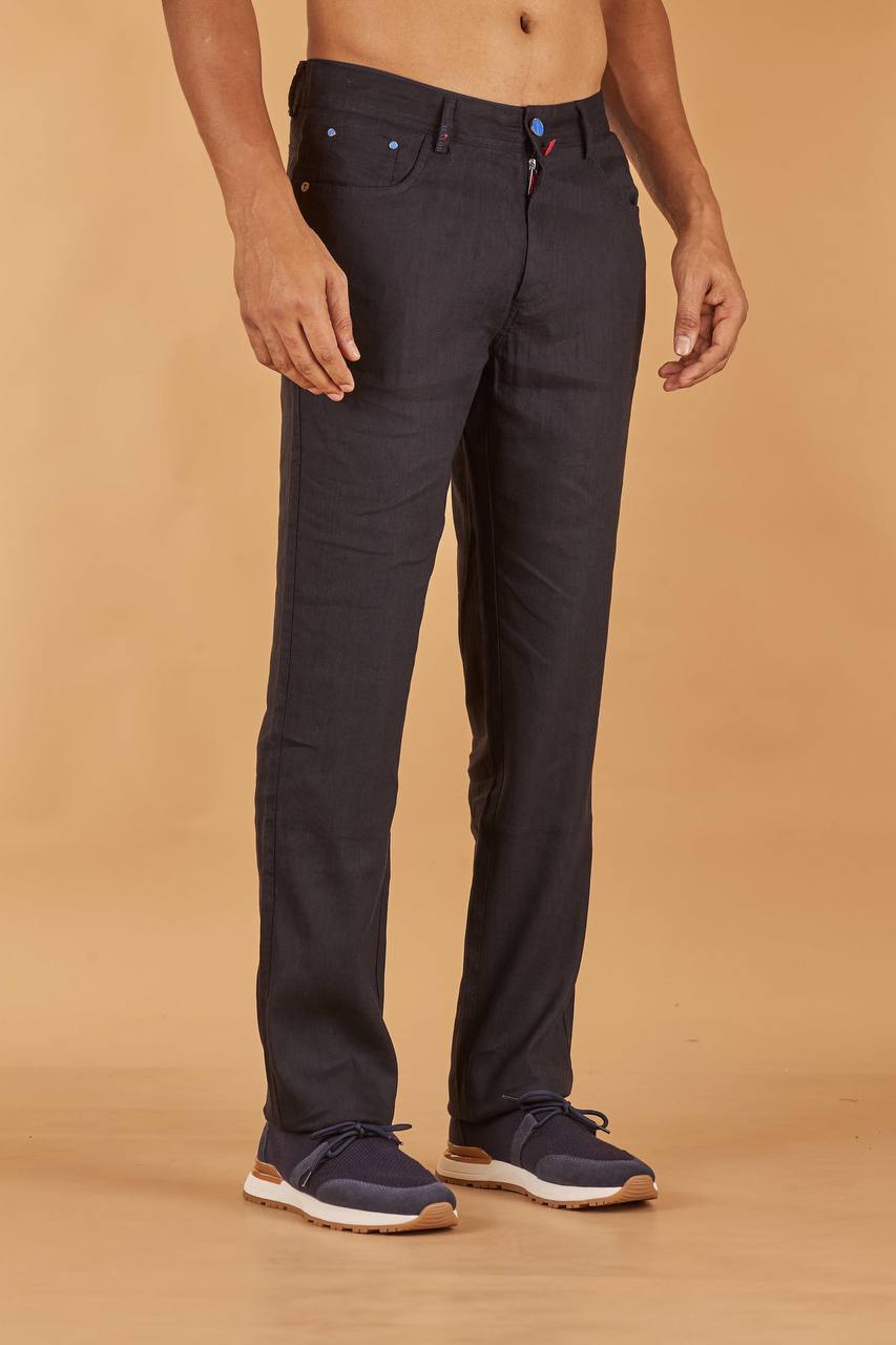 Брюки Kiton LUX-116224 - это стильные брюки классического кроя в темно-синем цвете. Текстура ткани имеет едва заметный рельеф. Идеальный вариант для создания элегантных повседневных образов.