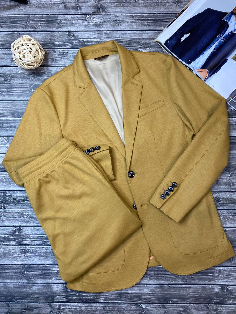 Мужской костюм выполнен в современном стиле. Он сочетает в себе элегантность и комфорт, подходя для различных мероприятий. Костюм станет отличным дополнением к гардеробу.
