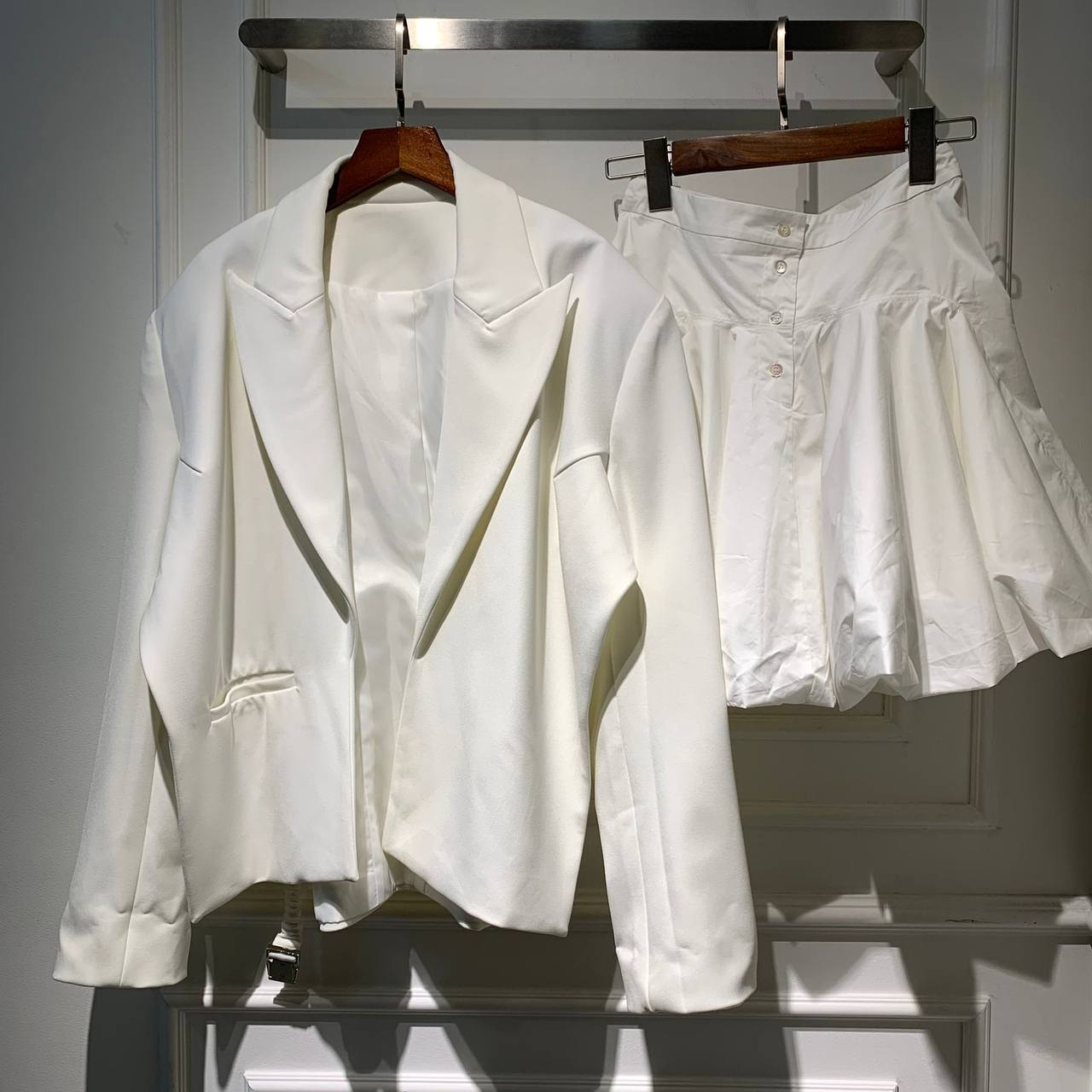 Этот стильный женский костюм от Luxe Crime, состоящий из жакета и юбки, станет отличным дополнением вашего гардероба. Он идеально подойдет для создания элегантного и современного образа.