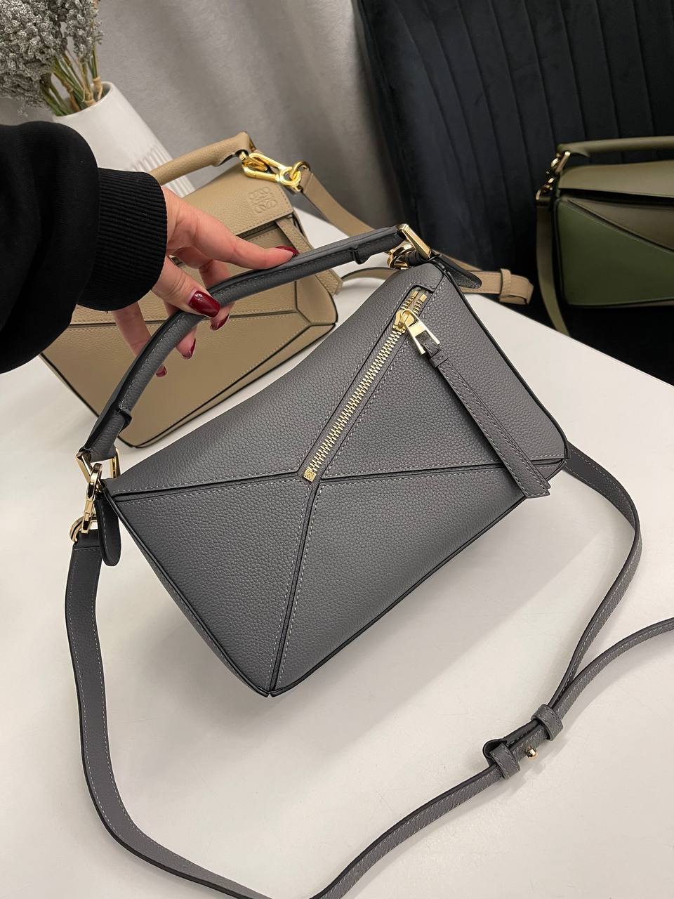 Сумка женская 24 см Loewe LUX-115323 — это элегантная сумка, выполненная в современном стиле. Сумка серого цвета с текстурированной поверхностью, оснащена удобной ручкой и съемным плечевым ремнем. Она идеально подходит для повседневного использования.