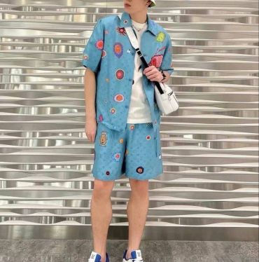 Мужской костюм Louis Vuitton LUX-119213 - это стильный комплект, состоящий из рубашки-поло с короткими рукавами и шорт. Костюм выполнен в узнаваемом стиле бренда, украшен клетчатым узором в сочетании синего, зеленого и белого цветов. Этот костюм - отличный выбор для создания летних образов.