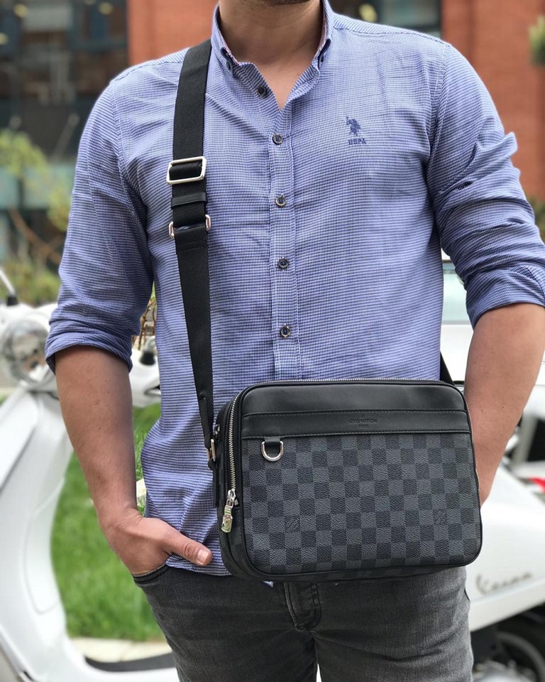 Сумка-мессенджер из канвы серого цвета с регулируемым ремнём. Размер: 29х21х8 см. Качество 1:1 к оригиналу.