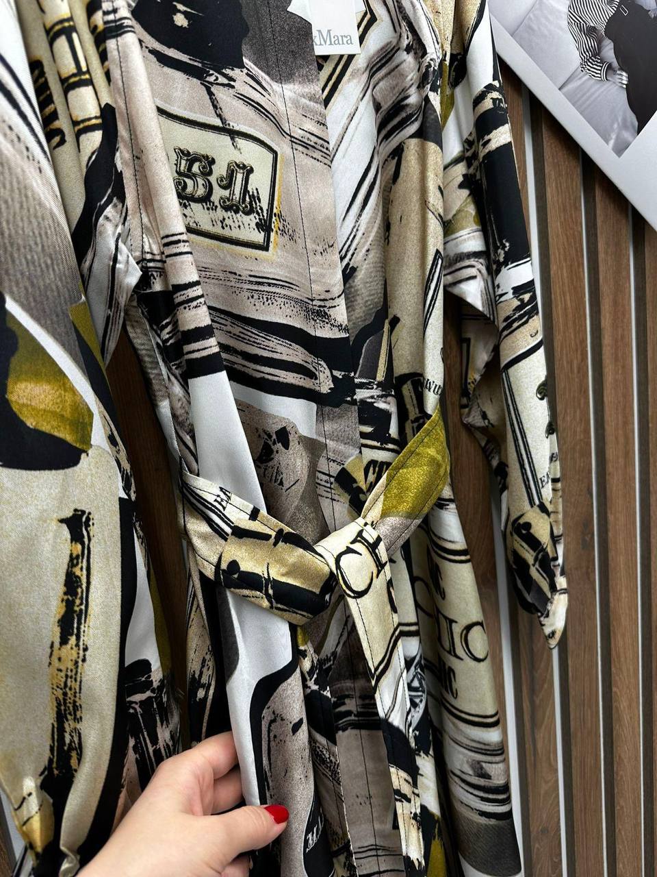 Платье Max Mara LUX-117019 — это элегантное платье-рубашка с длинными рукавами, выполненное в кремово-бежевых тонах с ярким принтом. Оно обладает расслабленным силуэтом и классическим воротником, что делает его подходящим для различных случаев. Это стильное платье подчеркнет индивидуальность и станет отличным дополнением к гардеробу.