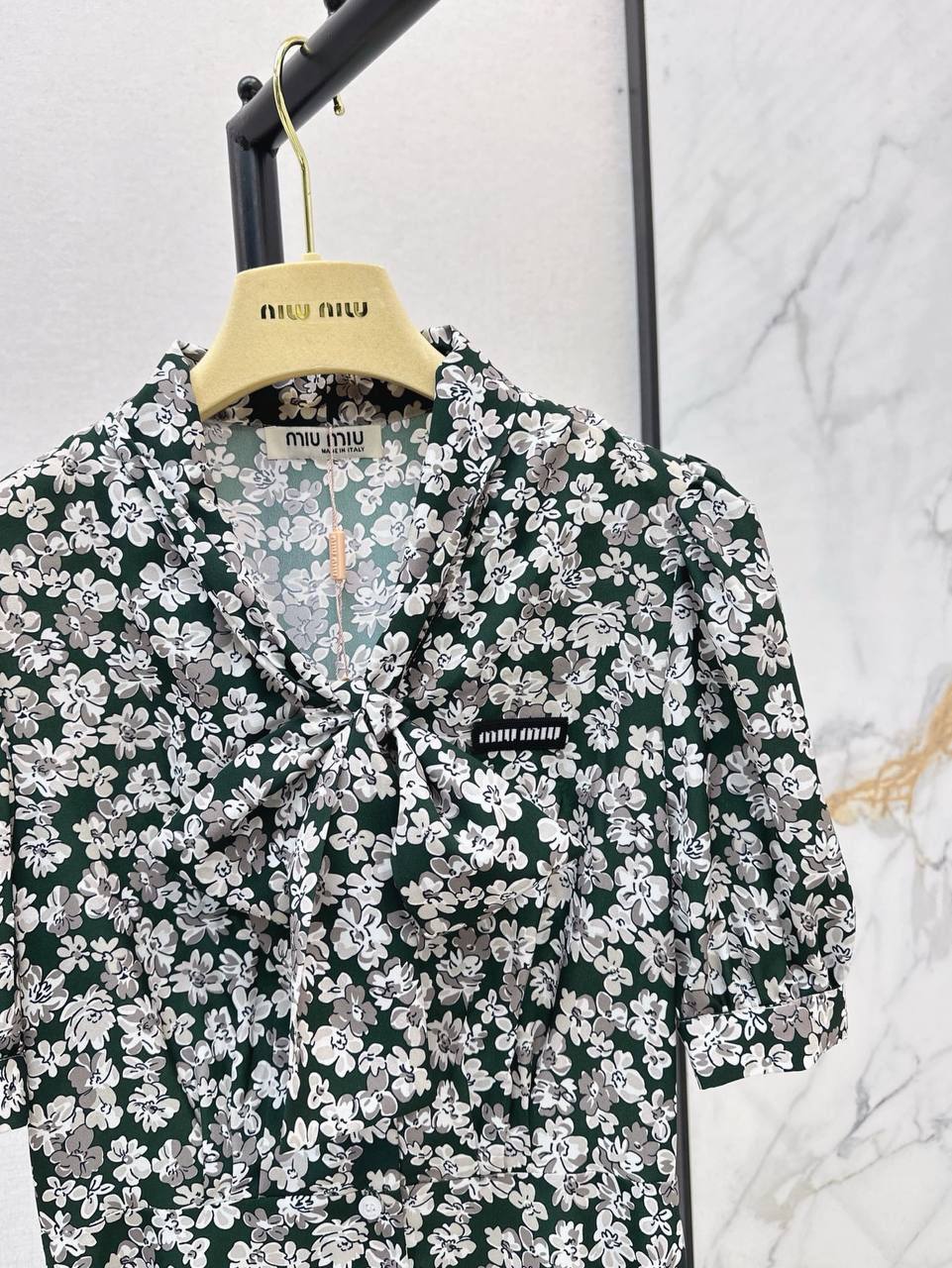 Платье Miu Miu LUX-118481 выполнено в романтичном стиле с цветочным принтом. Платье имеет глубокий V-образный вырез, короткие рукава и элегантную юбку. Этот наряд подойдет для различных мероприятий, от повседневных прогулок до вечерних выходов.